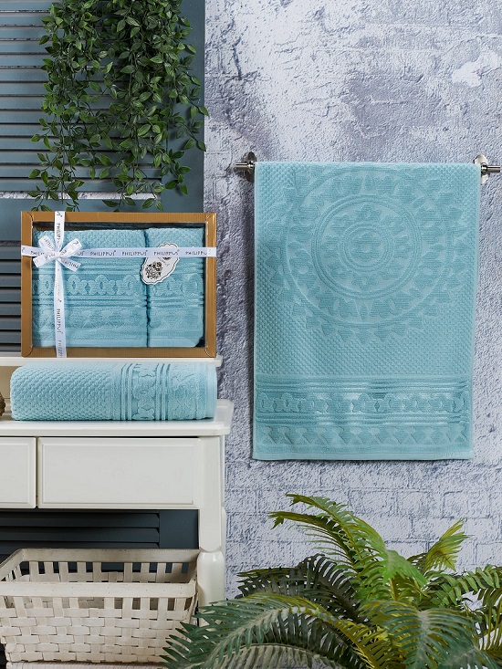 Комплект полотенец PHILIPPUS KUVEL голубой 2 шт: 50х90 см, 70х140 см; махра
