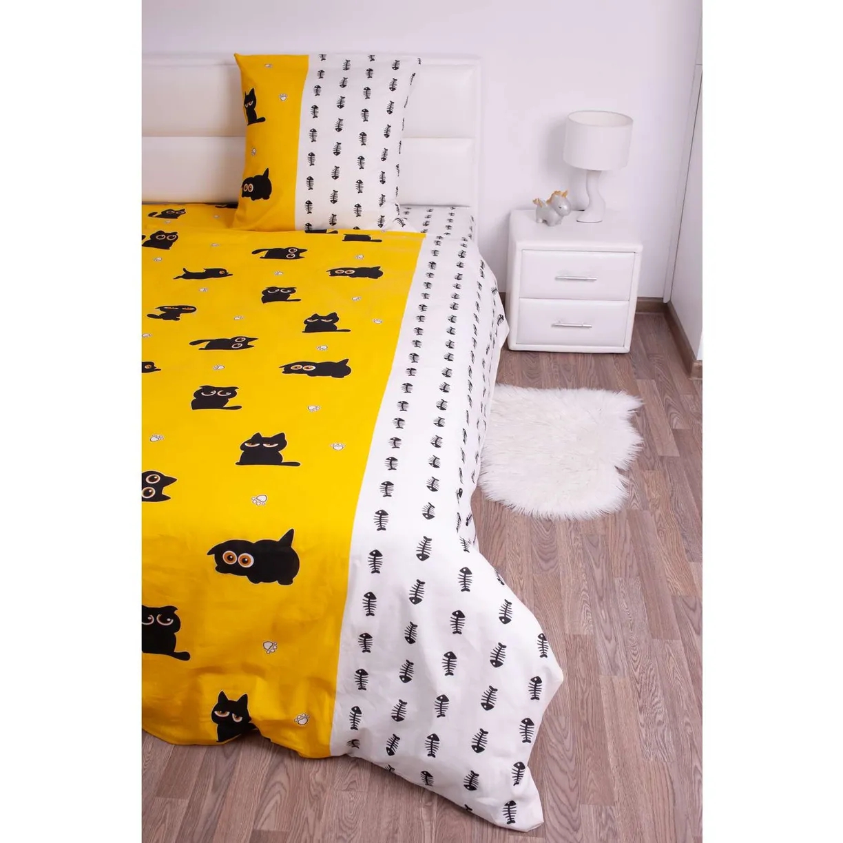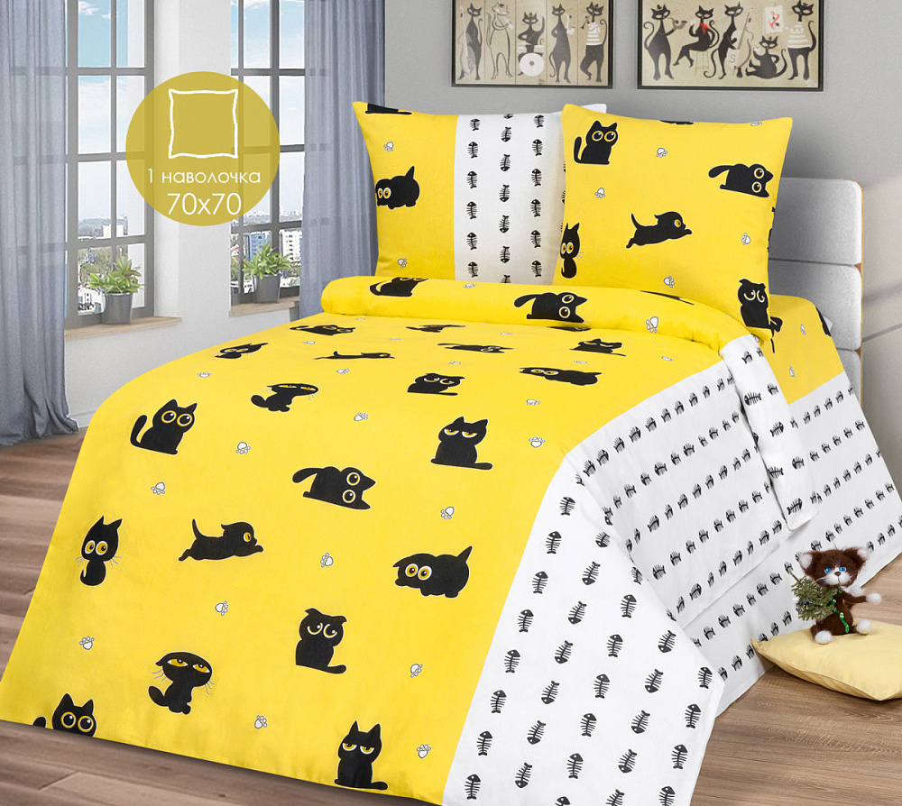 Комплект постельного белья Миланика Томас 1.5 спальный бязь в комплекте: одна простыня, один пододеяльник и наволочка. Материал - качественная и прочная бязь. Дизайн выполнен в желтых и белых оттенках с изображением котиков. Такой комплект идеально подойдет для детей и создаст атмосферу уюта и легкости в спальне. Уход за постельным бельем Миланика Томас не вызовет трудностей - стирка при 40 градусах без отжима, сушка в расправленном виде, глажка с изнаночной стороны на минимальной температуре.