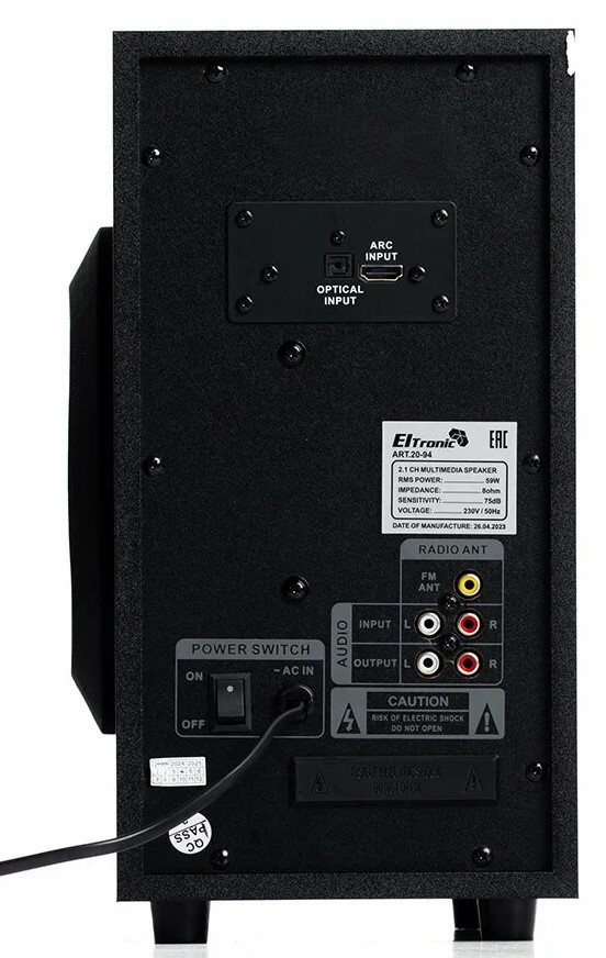 - Многофункциональность. Eltronic 20-94 не просто колонки — это универсальный аудиоцентр для вашего дома! Вы можете использовать систему для просмотра фильмов, прослушивания музыки с внешних накопителей, FM-радио или подключения к компьютеру и телевизору.