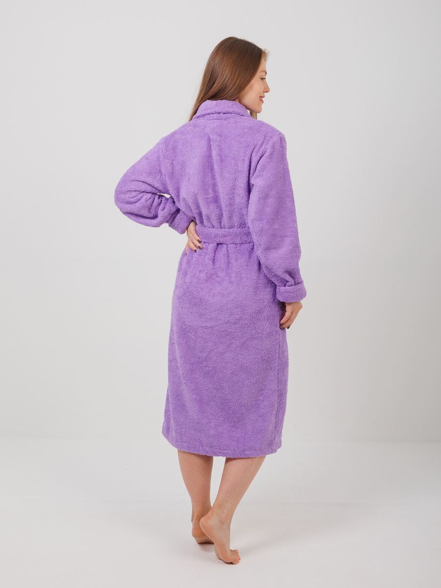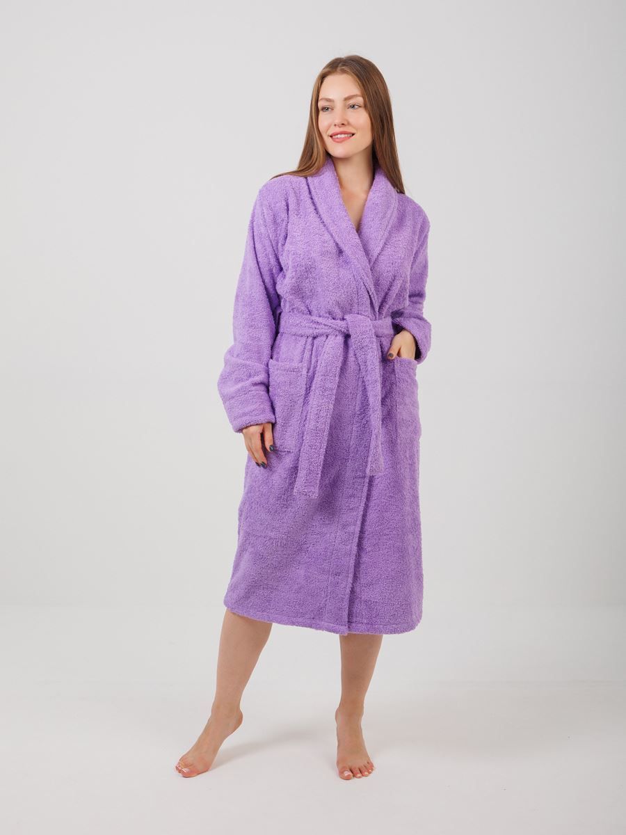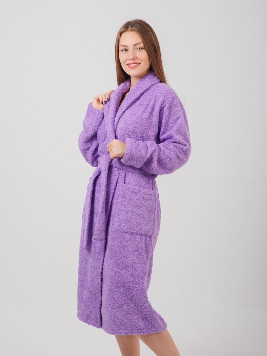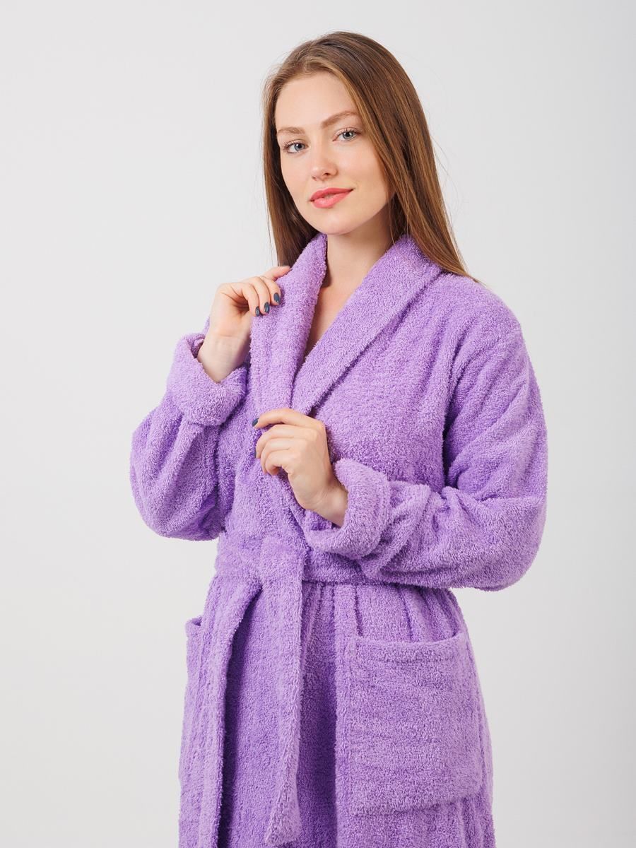 Халат махровый Фиолетовый размер: 52-54 и шалевым воротником сделан из 100%-ного хлопка. Такая одежда подойдет для комфортного ношения после душа или ванны. Цвет халата - фиолетовый - придает ему стильный и элегантный вид.