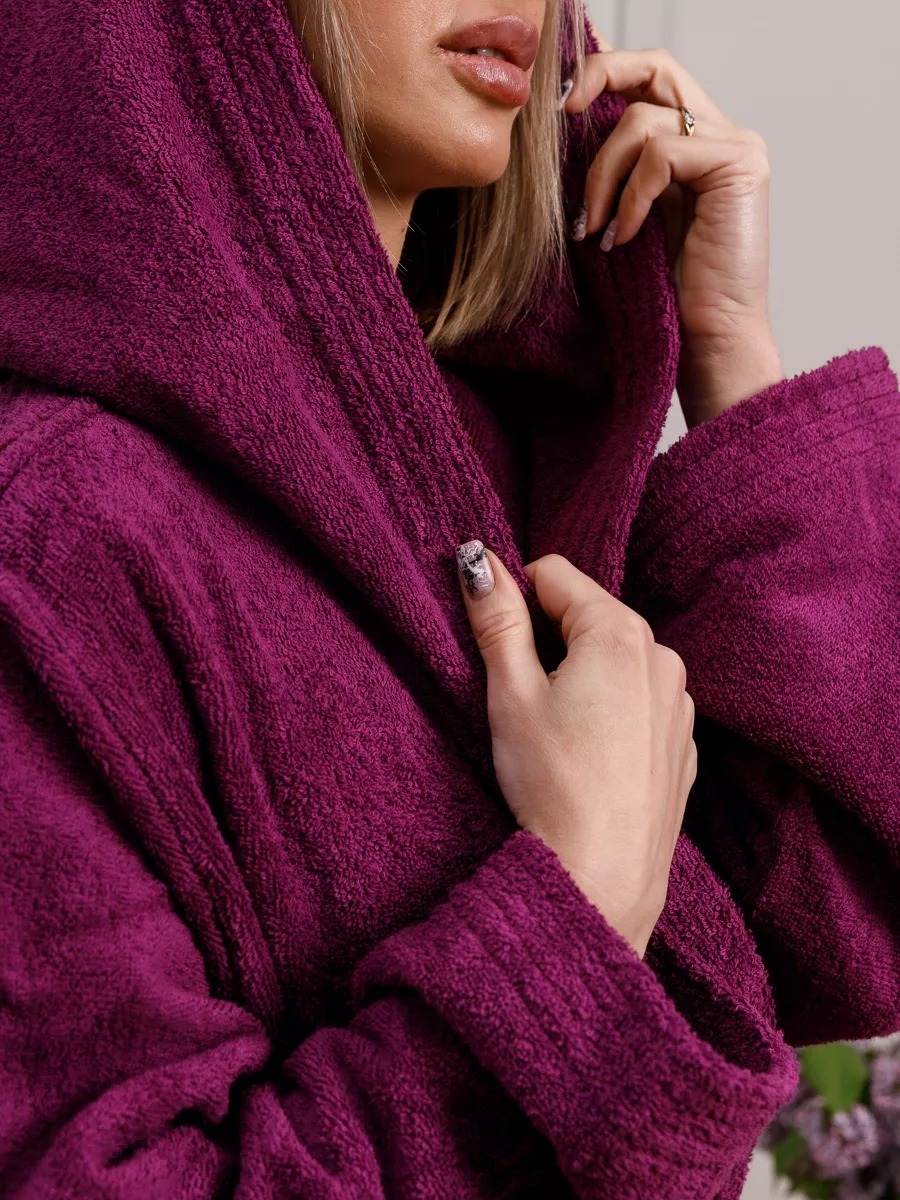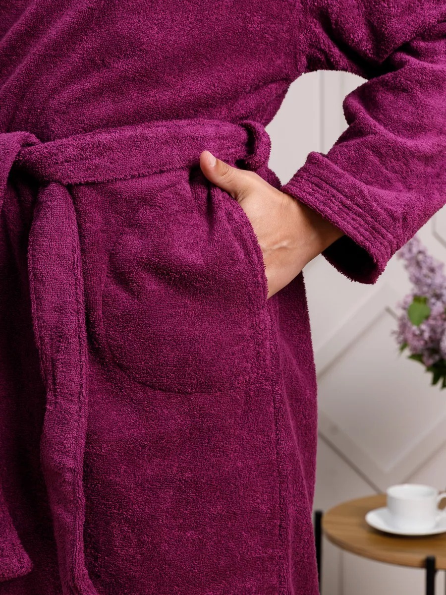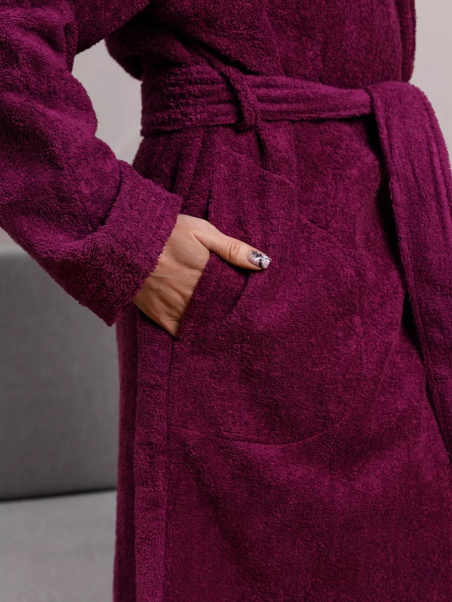Халат махровый бордового цвета — это не просто предмет одежды, а настоящий оазис уюта и комфорта после насыщенного дня. Бордовый цвет добавляет изысканности и стиля, делая халат не только практичным, но и эстетически привлекательным.