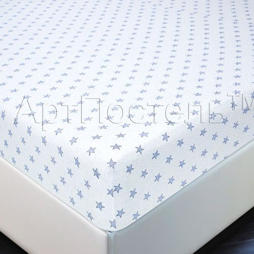 Простыня на резинке 160*200 трикотажная, Звезды (голубой)