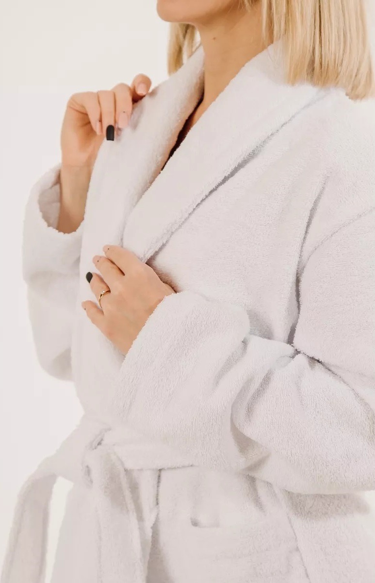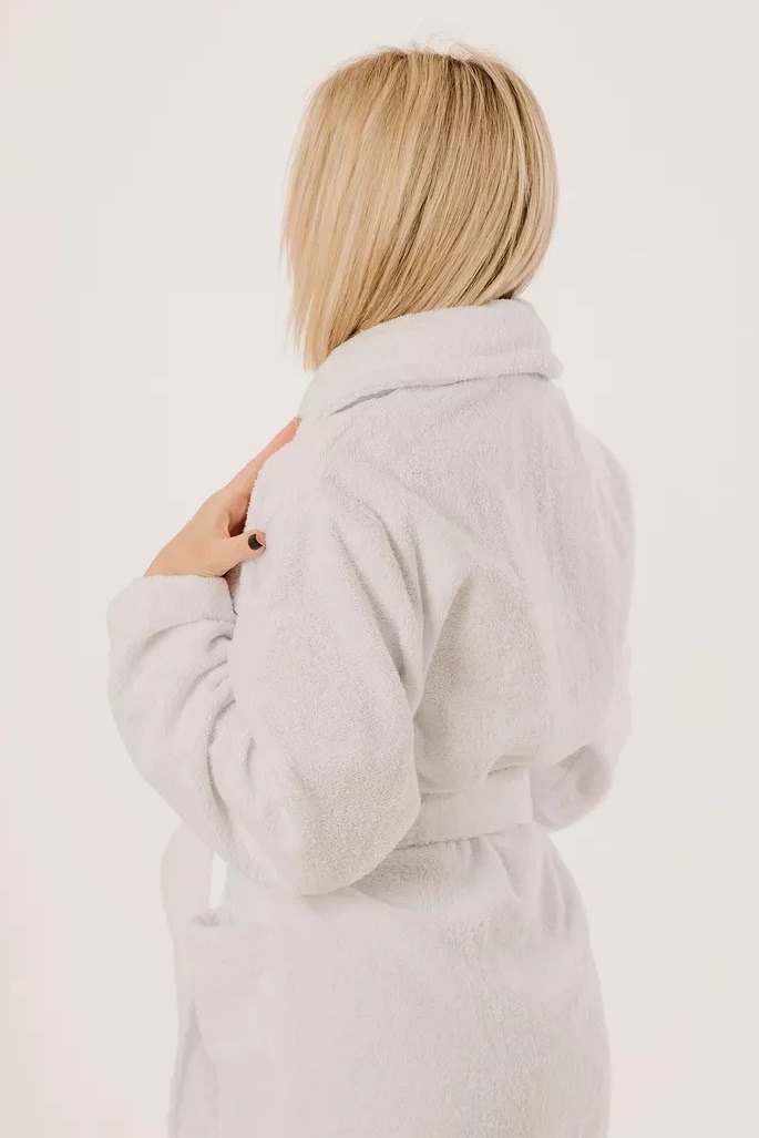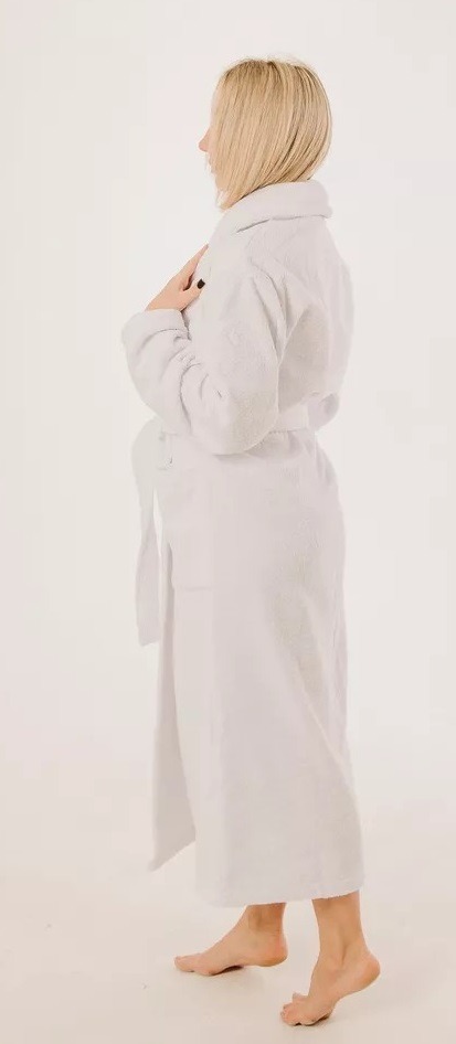 Халат отличается стильным дизайном с шалевым воротником, который добавляет изысканности и элегантности. Изготовленный из мягкого и приятного на ощупь махрового материала, он обеспечивает непревзойденный уровень комфорта. В нём вы сможете расслабиться после напряжённого дня и насладиться моментами уюта и спокойствия.