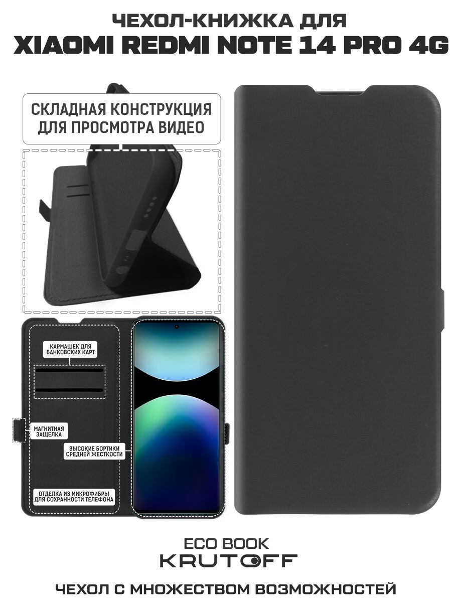 Чехол-книжка Krutoff Eco Book для Xiaomi Redmi Note 14 Pro в элегантном чёрном цвете — это не просто аксессуар, а настоящий защитник вашего смартфона. Он станет надёжным щитом, который убережёт устройство от царапин, пыли и ударов.