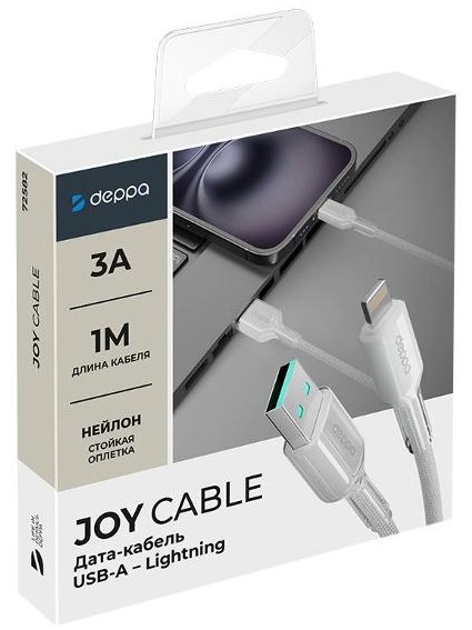 Ищете надёжный кабель для зарядки и передачи данных? Deppa Joy — это то, что вам нужно! Белый кабель с разъёмами USB Type-A и Lightning станет незаменимым помощником для владельцев устройств Apple.
