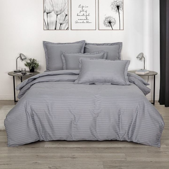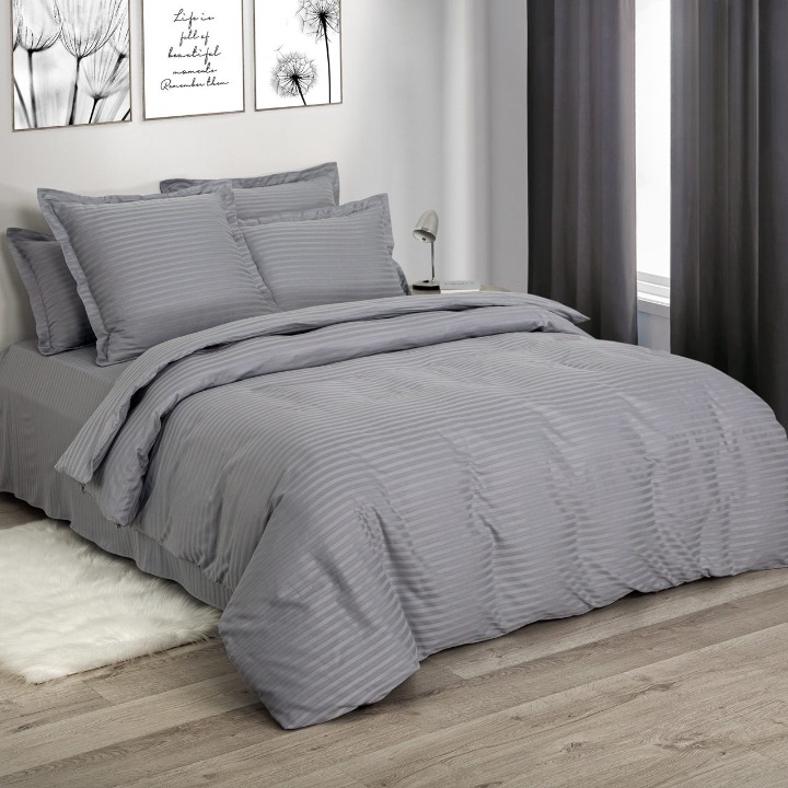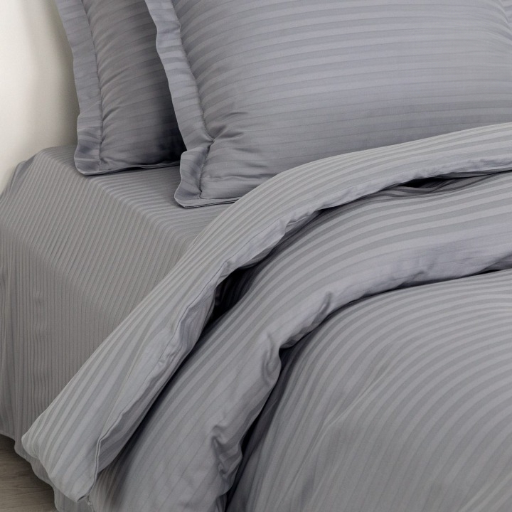 Комплект постельного белья АРТПОСТЕЛЬ «Серебро» (полоса) Евро — это воплощение элегантности и комфорта в каждой детали. Страйп-сатин, используемый в этом комплекте, поражает своей изысканностью: классическое жаккардовое плетение нитей создаёт утончённый полосатый узор, а 100% хлопок обеспечивает исключительную мягкость и комфорт.