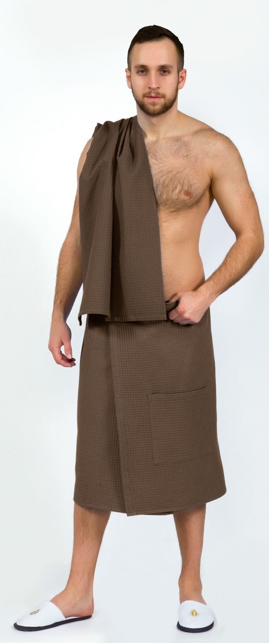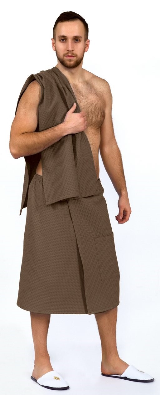 Набор для бани и сауны мужской «АРТПОСТЕЛЬ» (коричневый): килт и полотенце — это то, что нужно ценителям комфорта и качества.