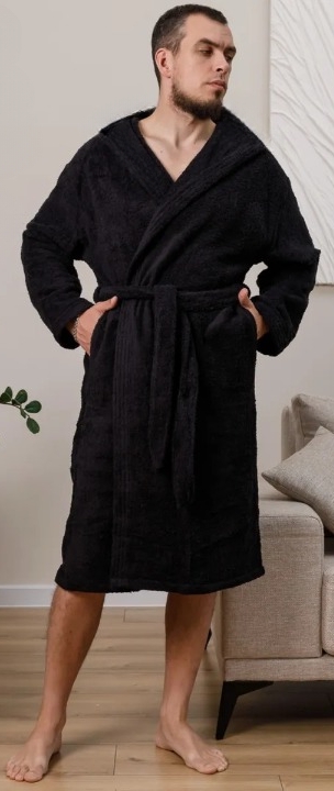 Халат махровый чёрного цвета — это не просто предмет одежды, а настоящее воплощение уюта и комфорта. Он станет идеальным дополнением к вашему домашнему гардеробу и позволит расслабиться после насыщенного дня.