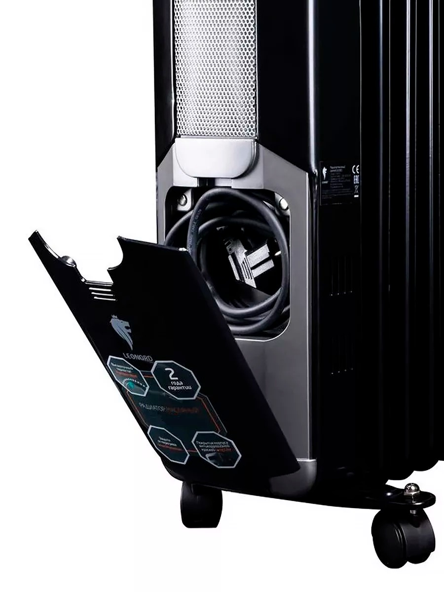 Масляный радиатор Leonord LE-1909 в элегантном чёрном цвете — это не просто обогреватель, а настоящий помощник в создании комфортной температуры в вашем доме! Благодаря компактным размерам секции (148 х 570 мм) радиатор легко впишется в любой интерьер, не занимая много места.