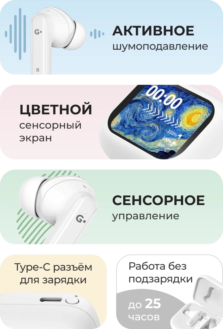 Погрузитесь в мир музыки с наушниками TWS Geozon Cosmos White! Эти стильные внутриканальные наушники станут вашим надёжным спутником в повседневной жизни.