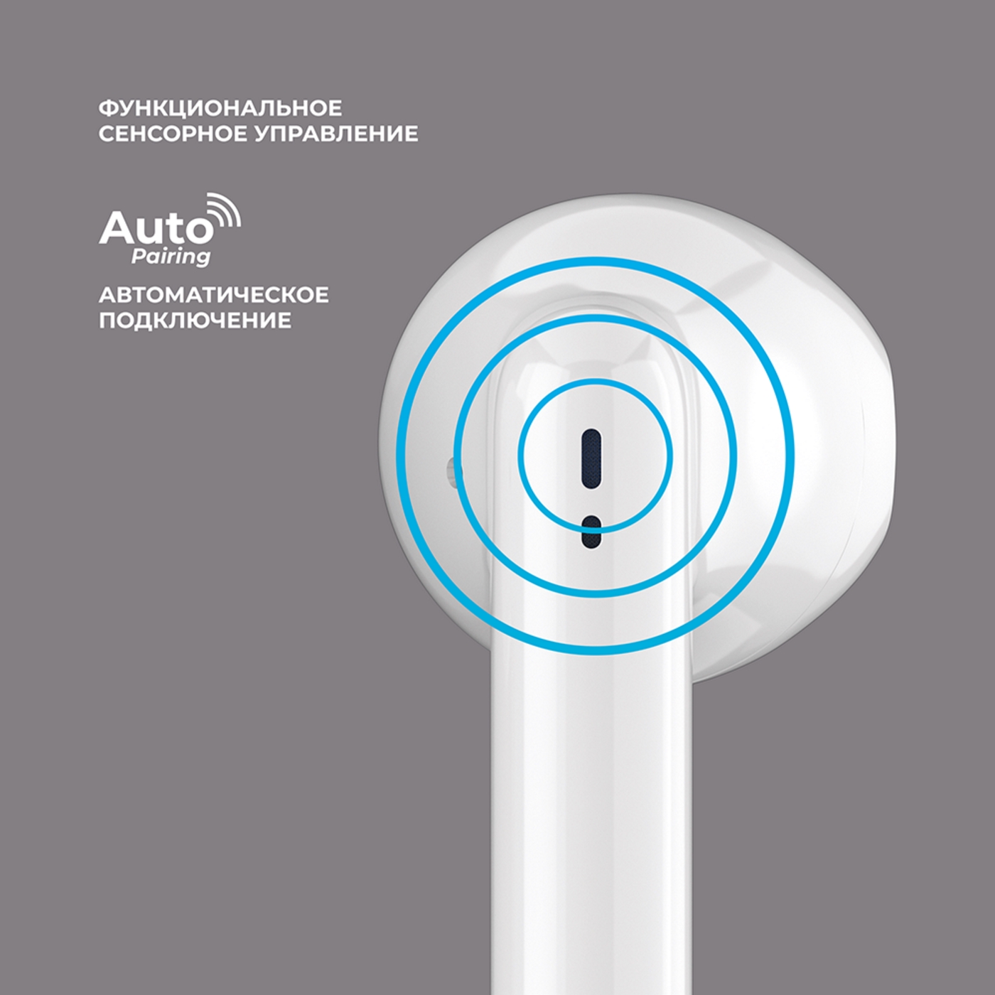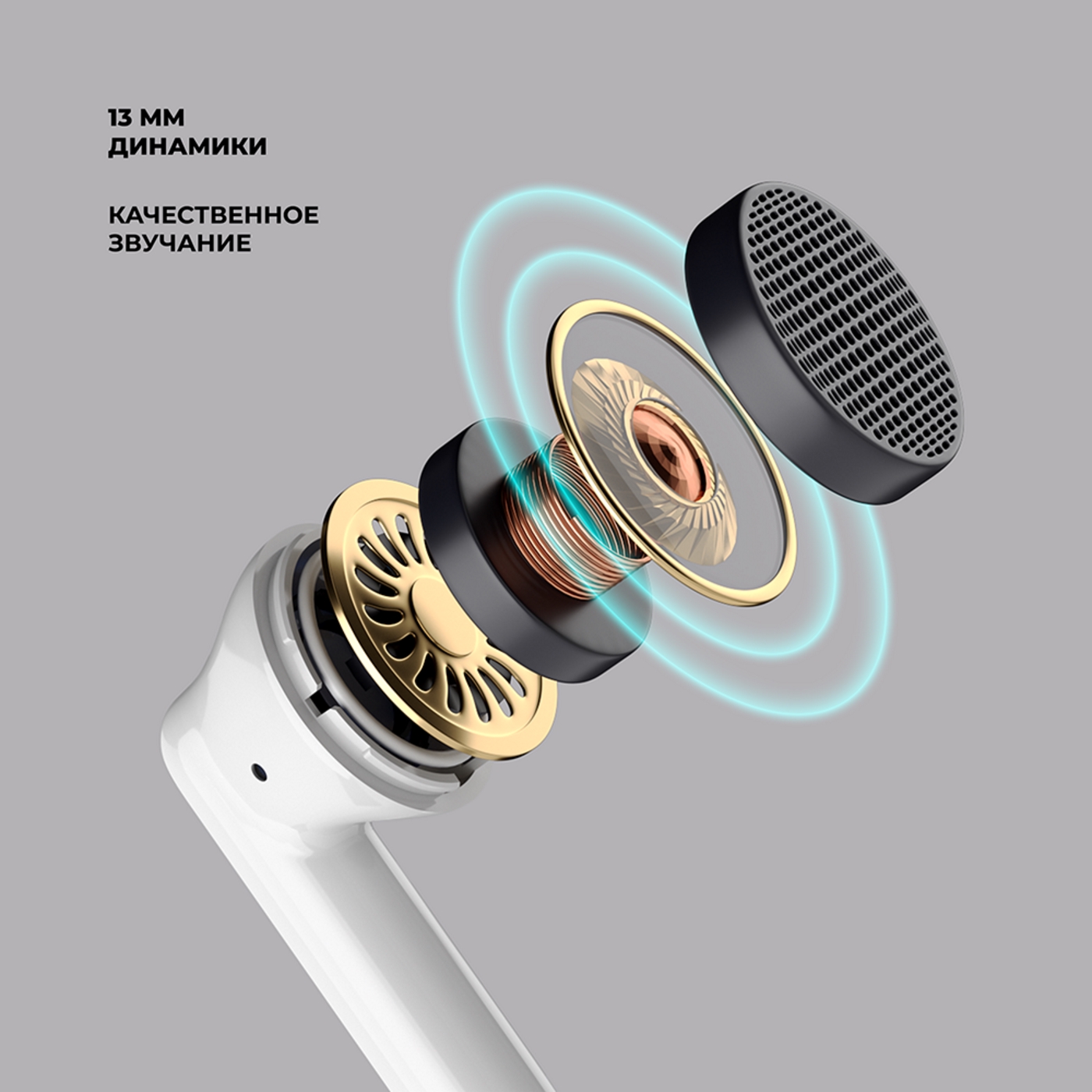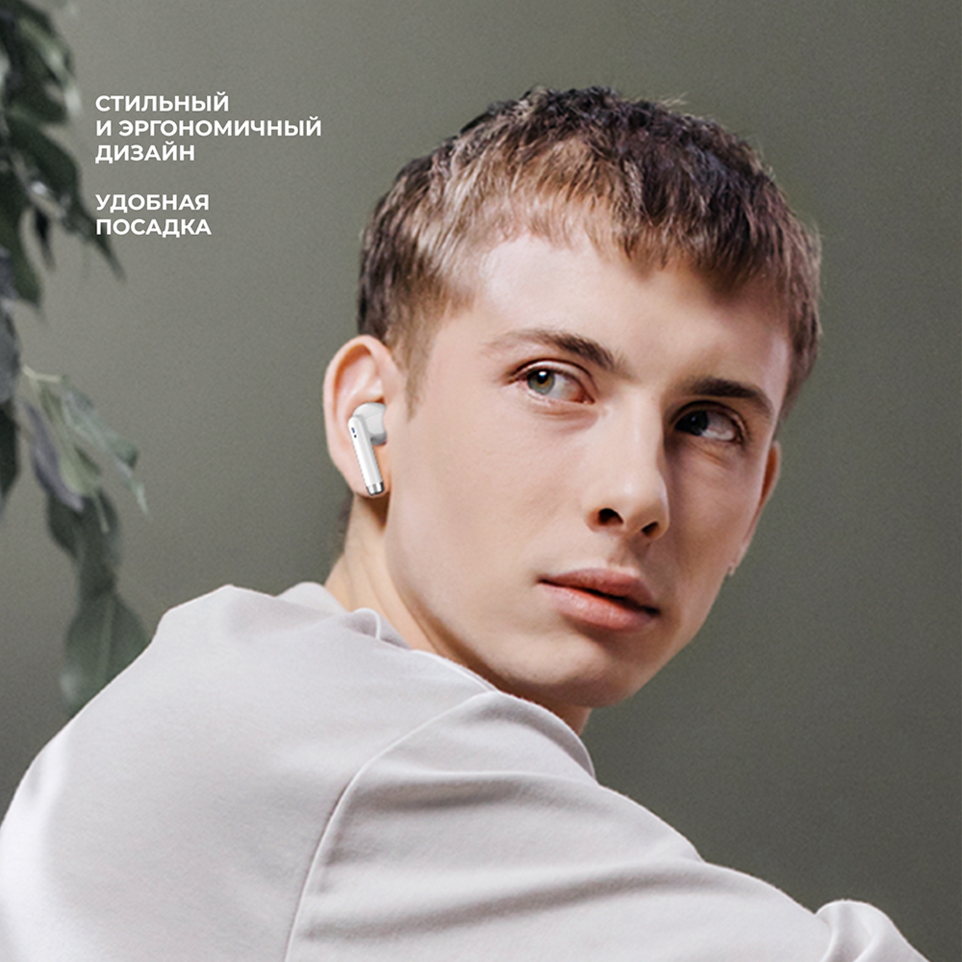 Компактная конструкция вкладышей обеспечивает надёжную фиксацию в ушной раковине, а белый цвет придаёт наушникам элегантный вид. LED-индикатор поможет отслеживать уровень заряда, а поддержка различных профилей (HFP, HSP, A2DP, AVRCP) гарантирует совместимость с большинством устройств.