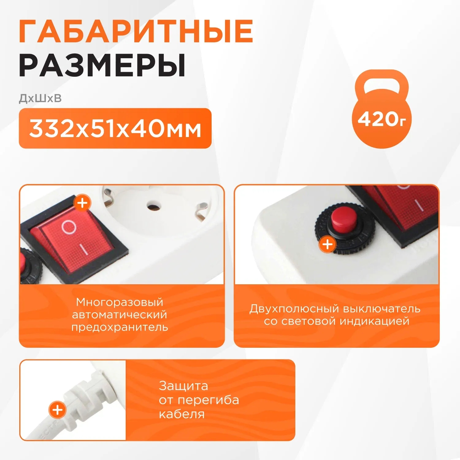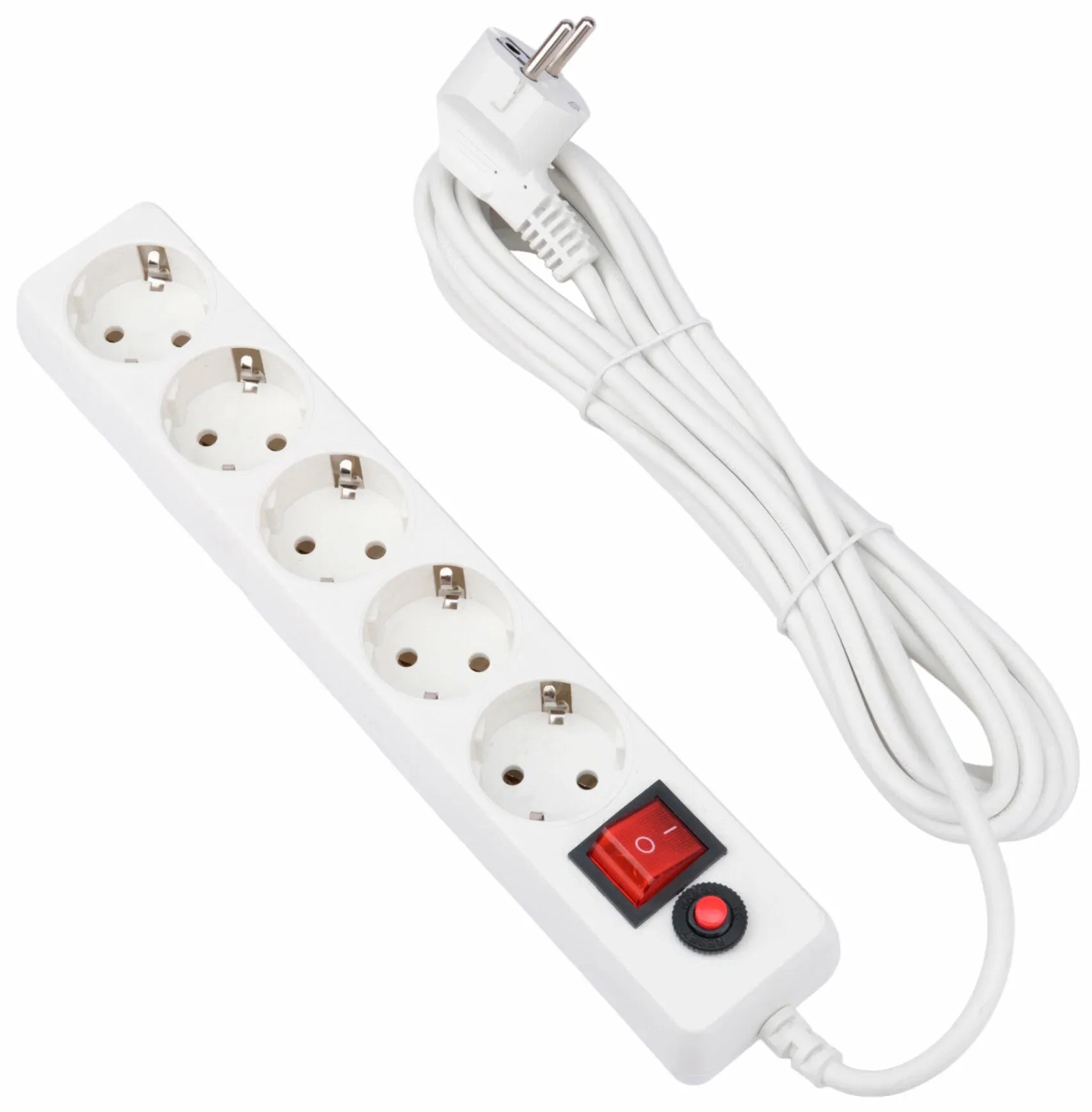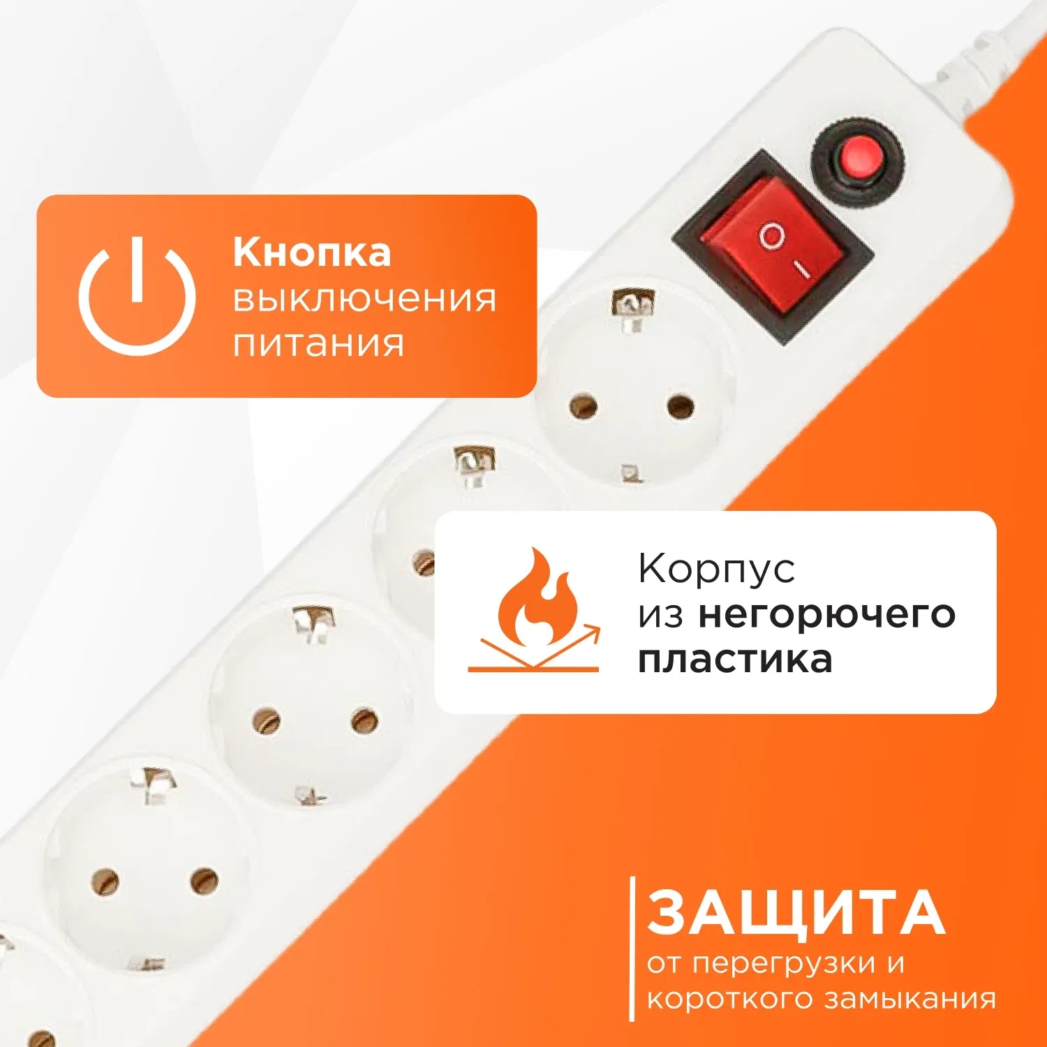 Белый цвет и лаконичный дизайн позволяют сетевому фильтру гармонично вписаться в любой интерьер — будь то домашний офис или просторная гостиная. Длина кабеля в 5 метров даёт свободу в выборе места для подключения устройств, избавляя от необходимости использовать дополнительные удлинители.