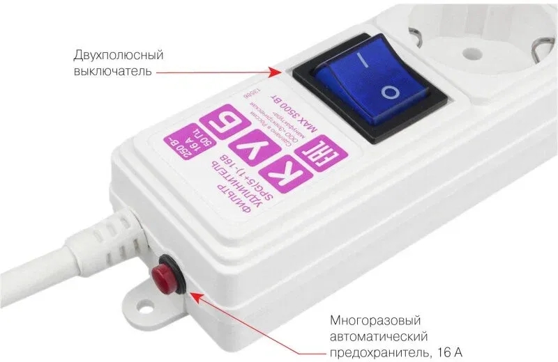 С максимальной нагрузкой в 3500 Вт этот сетевой фильтр справится с обеспечением стабильной работы даже самых мощных устройств. При этом он рассчитан на напряжение сети 250 В и номинальную силу тока 16 А, что делает его универсальным помощником в быту и офисе.