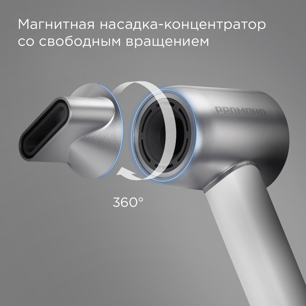 Этот фен станет вашим верным помощником в создании идеальных причёсок. Благодаря стильному серому и белому цвету он гармонично впишется в любой интерьер ванной комнаты.