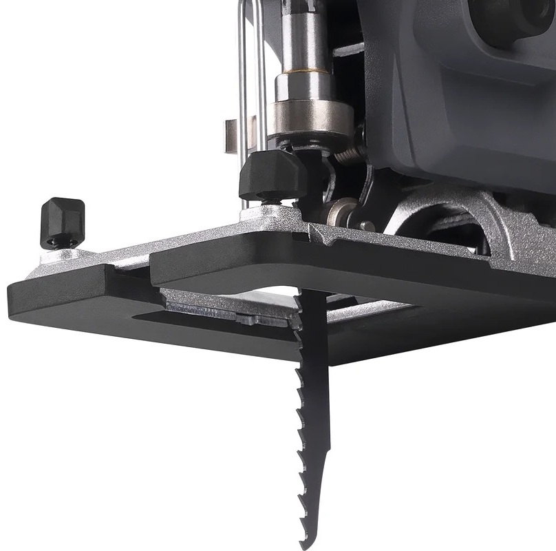Прочное литое алюминиевое основание гарантирует стабильность инструмента во время работы, а быстрозажимной патрон позволяет менять пильные полотна быстро и без лишних усилий — без использования дополнительных инструментов.