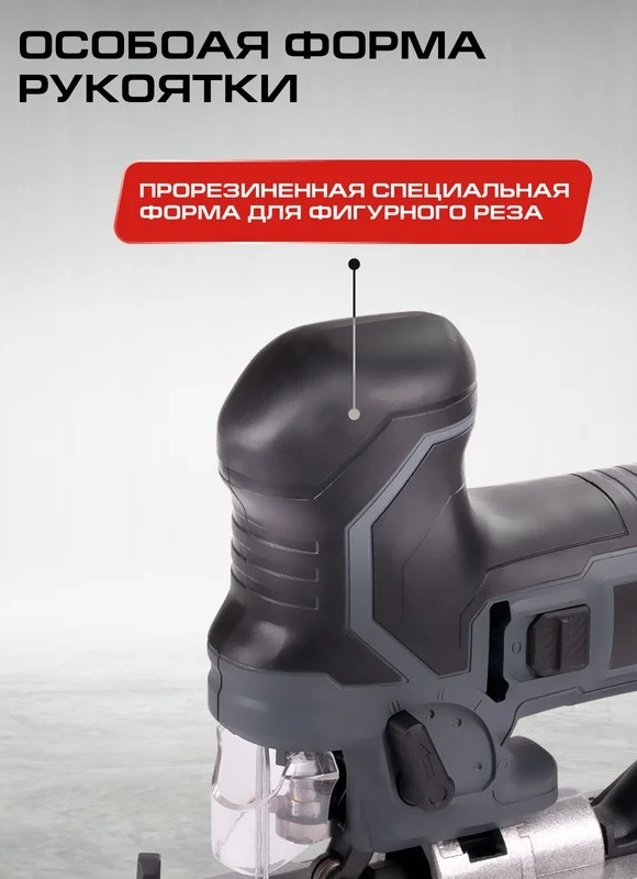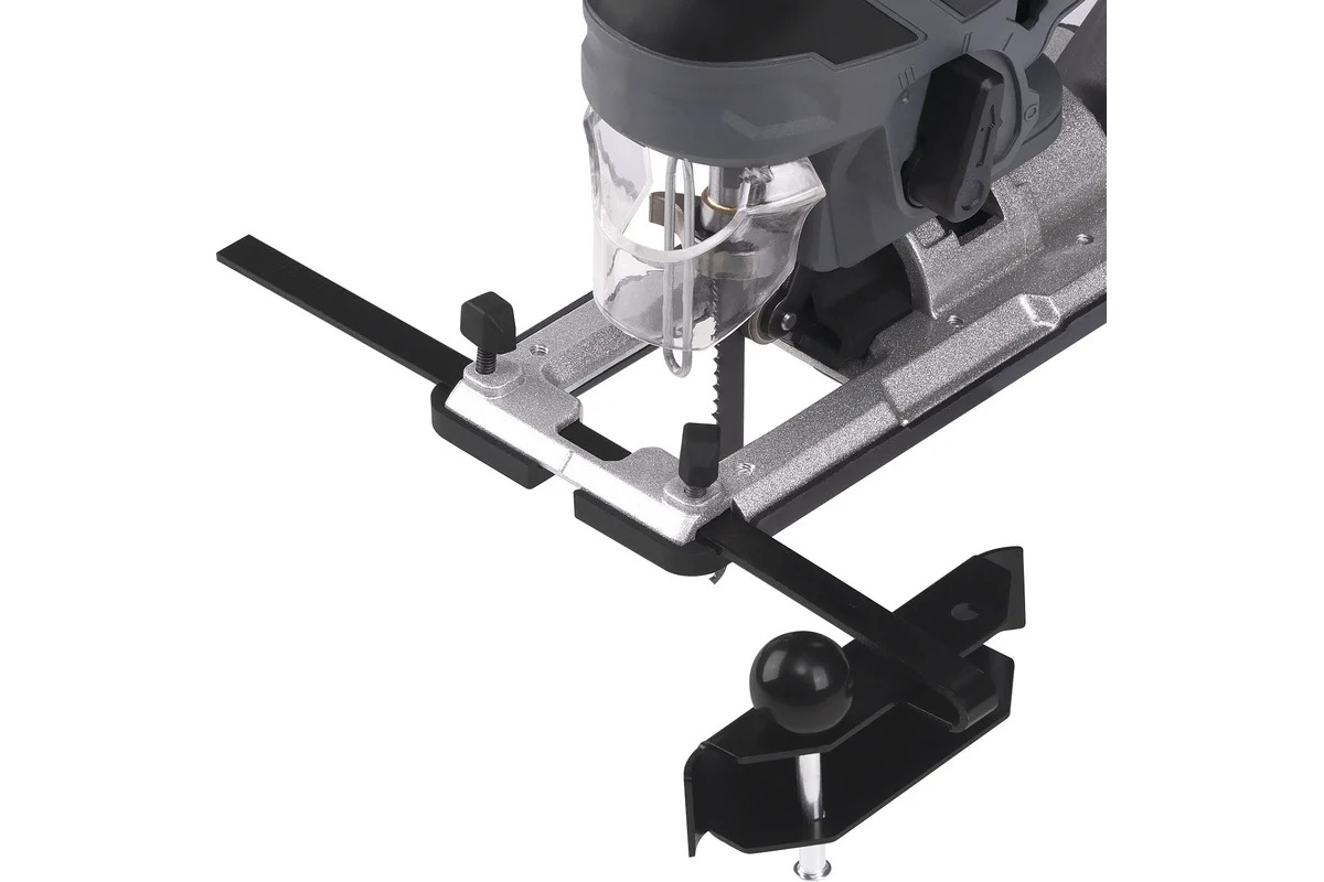 Грибовидная рукоятка, параллельный упор с циркулем и регулировка амплитуды хода обеспечивают гибкость и точность при выполнении даже самых сложных фигурных резов. А возможность наклонить рез до 45° в обе стороны значительно упрощает работу с косыми пропилами.