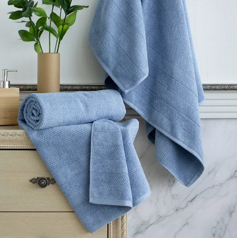 Изготовленные из мягкой и приятной на ощупь махровой ткани, эти полотенца обеспечивают отличное впитывание влаги и дарят ощущение нежности при каждом использовании. Пудрово-голубой цвет добавит изысканности вашей ванной комнате и гармонично впишется в любой интерьер.