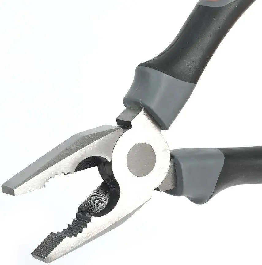 Головка инструмента выполнена из прочной углеродистой стали, а режущие кромки закалены — это гарантирует долговечность и эффективность работы. Эргономичные трёхкомпонентные рукоятки обеспечивают надёжный хват: пассатижи не будут выскальзывать из рук, что существенно повышает удобство и безопасность работы.
