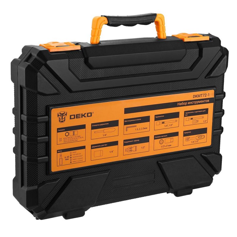 В наборе 72 прочных инструмента из стали, которые гарантируют долгий срок службы и устойчивость к интенсивным нагрузкам. С DEKO DKMT72-1 у вас всегда под рукой нужные инструменты: