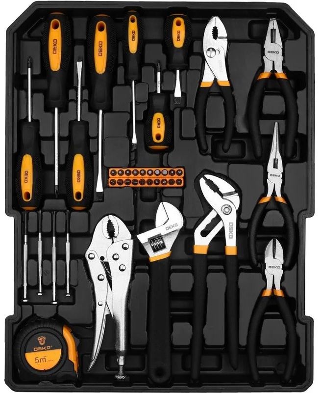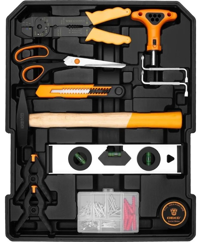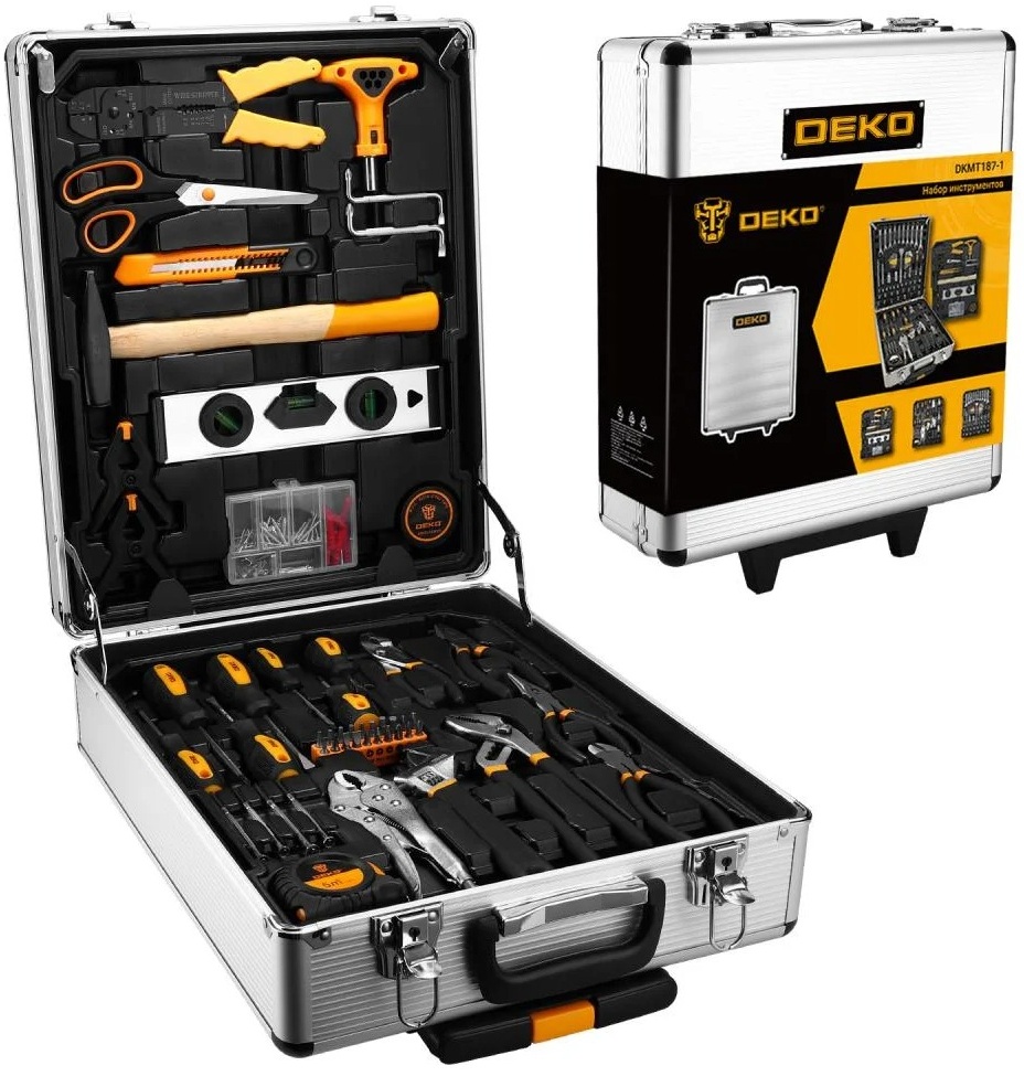 Все инструменты упакованы в удобный кейс, что обеспечивает их безопасное хранение и транспортировку. DEKO DKMT 187-1 — это надёжный и универсальный набор инструментов, который станет незаменимым помощником в любом доме или гараже.