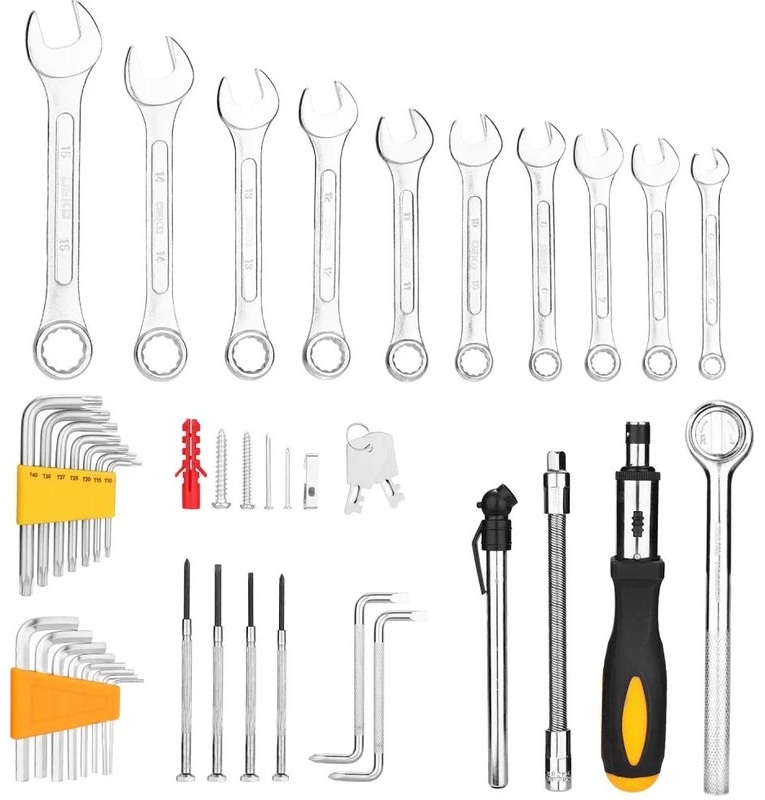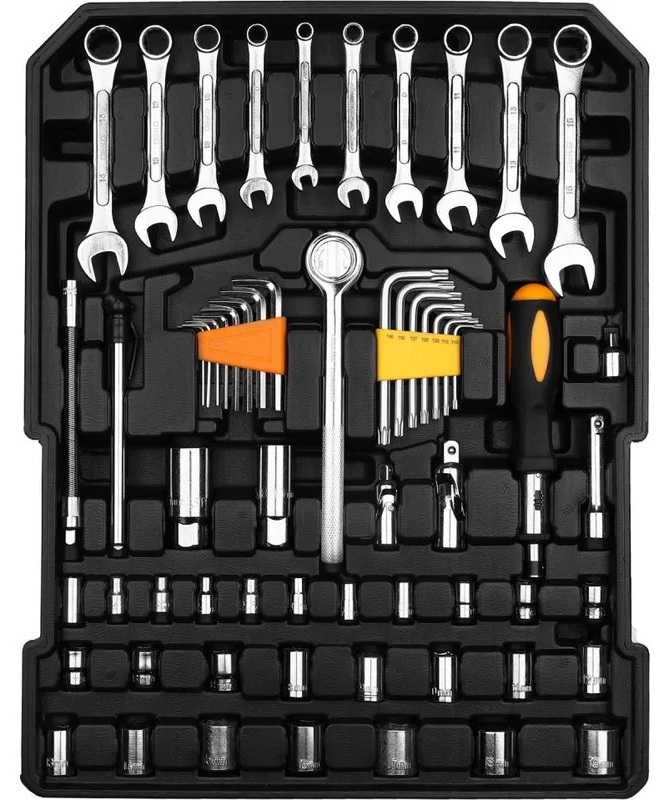 В наборе представлены комбинированные и шестигранные ключи, а также ключи Торкс, что позволяет работать с различными видами крепежа. Кроме того, в наборе есть отвёртки разных типов и размеров (SL, PH), а также прецизионные отвёртки, что делает набор ещё более универсальным.