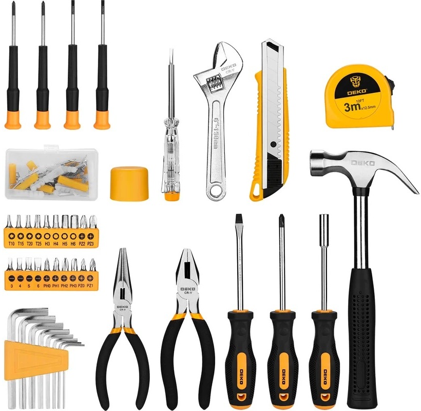 Набор инструментов DEKO TZ 100-2 — это универсальный комплект, который станет незаменимым помощником для любого мастера. В наборе 100 предметов, среди которых ключи, отвёртки, пассатижи, биты и другие инструменты.
