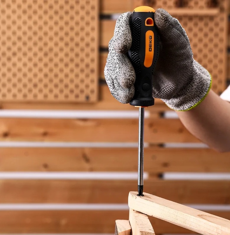 Дополнительные инструменты, такие как плоскогубцы, пассатижи, рулетка и молоток, делают набор удобным в использовании для различных видов работ. А наличие комплекта крепежа по дереву расширяет возможности использования набора.