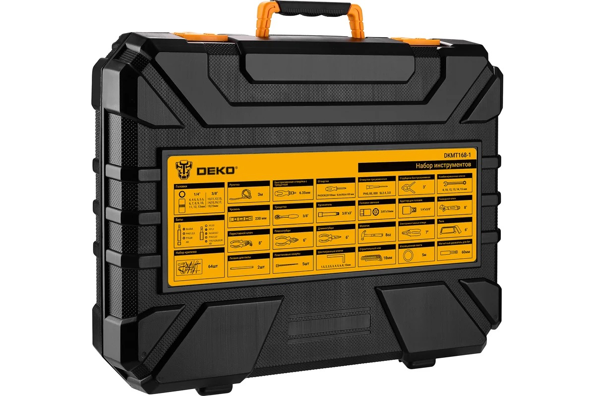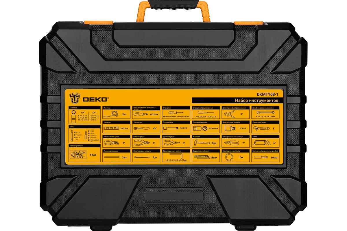 DEKO DKMT168-1 083-2051 станет верным помощником в домашних делах и поможет воплотить в жизнь любые ремонтные задумки. Наличие широкого ассортимента инструментов в одном наборе избавит от необходимости покупать каждый инструмент отдельно — всё самое нужное уже собрано для вас.