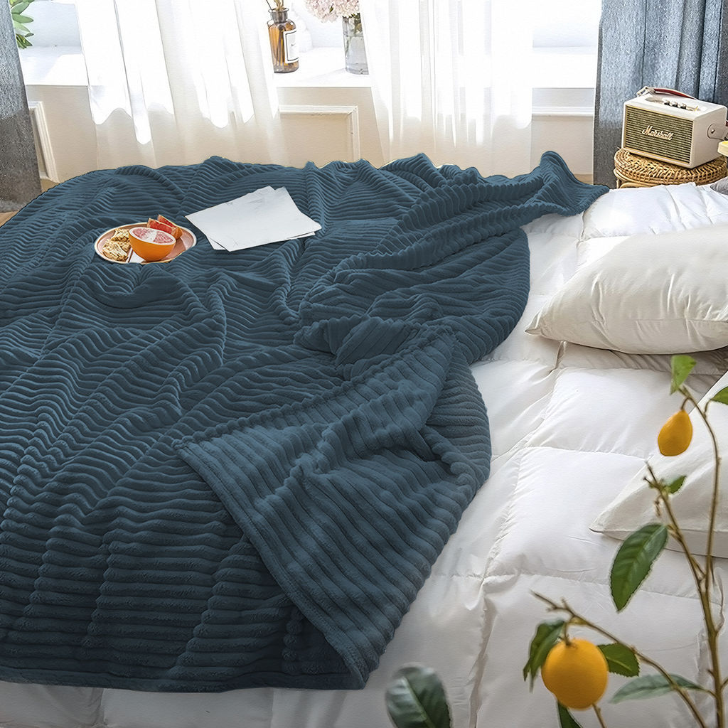 Этот плед — не просто предмет домашнего обихода, а настоящий акцент, который преобразит ваш интерьер. Синие полосы добавят в обстановку нотку элегантности и непринуждённого стиля. Благодаря размеру 150х200 см плед идеально подойдёт как для односпальной кровати, так и для дивана.