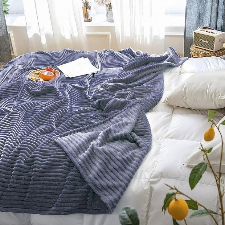 Плед Vse DOMA Полоса 150х200 см, велсофт, сине-серый