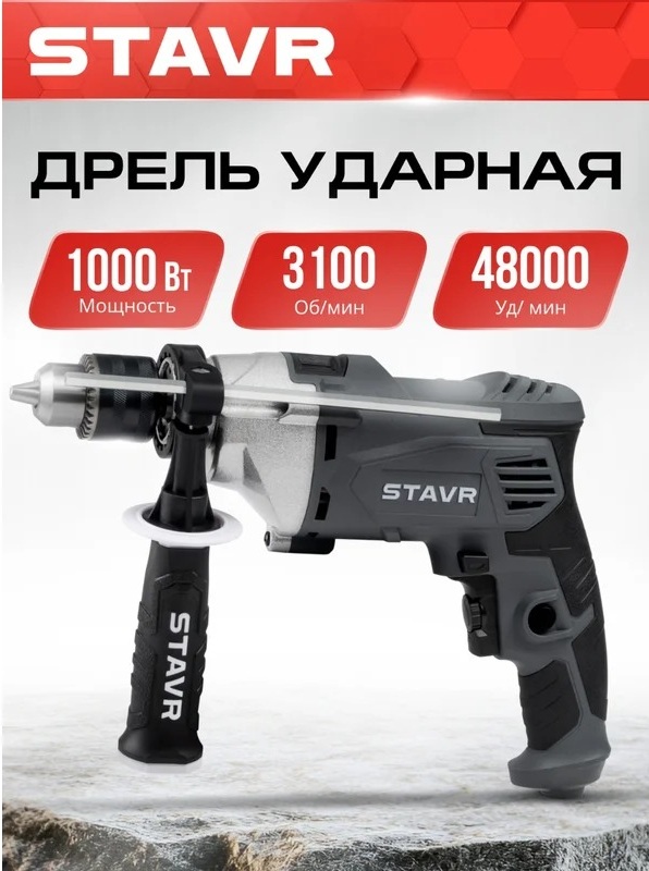 Ударная дрель STAVR SID 1000-13M — надёжный помощник в строительных и ремонтных работах! С мощностью в 1000 Вт она легко справится с самыми твёрдыми материалами. Благодаря высокой скорости вращения — до 3200 об/мин — и частоте ударов до 48 000 уд/мин работа будет выполнена быстро и качественно. Ключевой патрон с диапазоном 2–13 мм позволяет использовать различные свёрла, что делает дрель универсальной для множества задач. STAVR SID 1000-13M станет незаменимым инструментом в вашем арсенале, поможет воплотить даже самые амбициозные проекты!