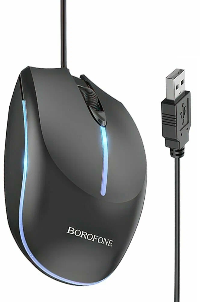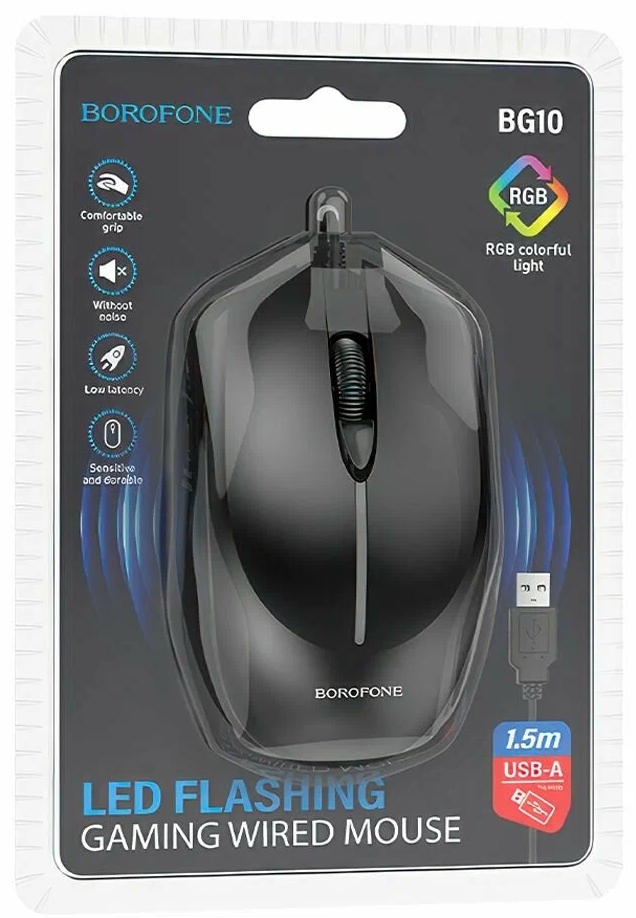 Мышь Borofone BG10 Soaring game — это стильное и функциональное устройство, которое станет отличным выбором для тех, кто ищет надёжную и удобную мышь. Чёрный цвет и лаконичный дизайн позволяют ей гармонично вписаться в любой интерьер.