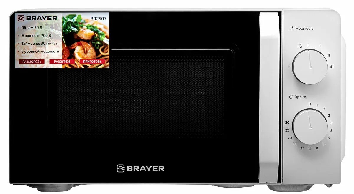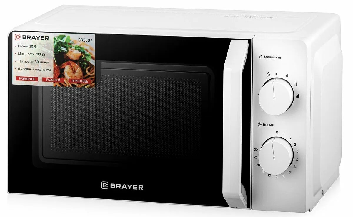 Ищете надёжную и стильную микроволновую печь? BRAYER BR2507 — отличный выбор для вашей кухни!
