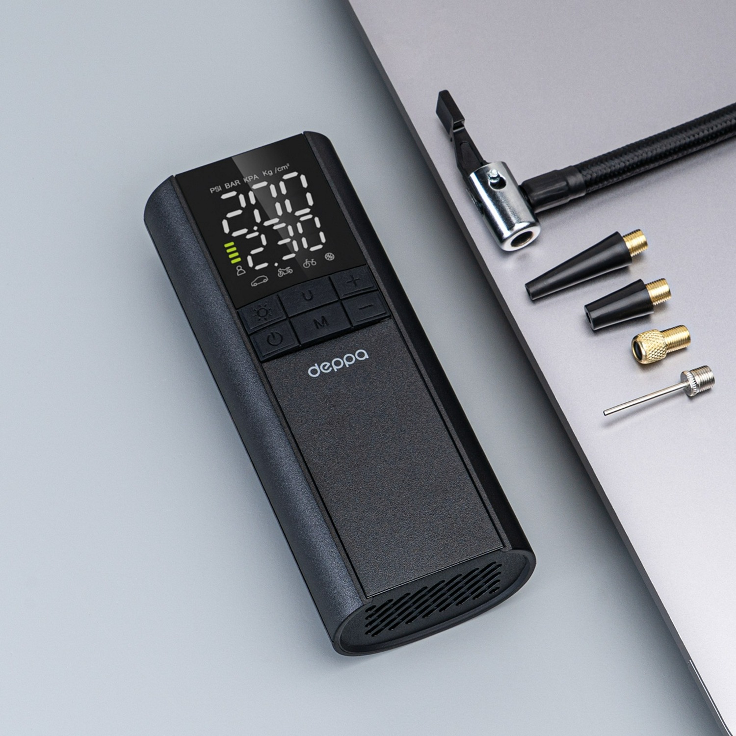 С компрессором Deppa 12001 вы всегда будете уверены в том, что ваши шины накачаны должным образом. Путешествуйте с комфортом и без забот с Deppa!