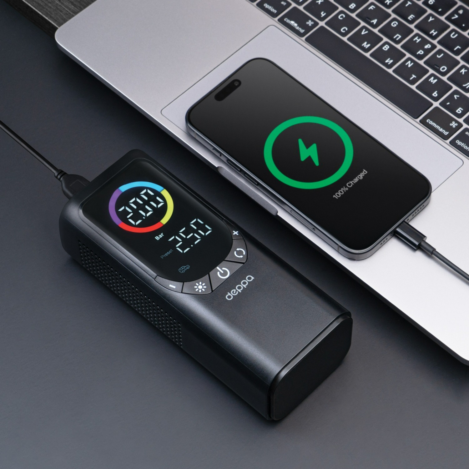 С компрессором Deppa 12002 вы всегда будете уверены в том, что ваши шины накачаны должным образом. Путешествуйте с комфортом и без забот с Deppa!