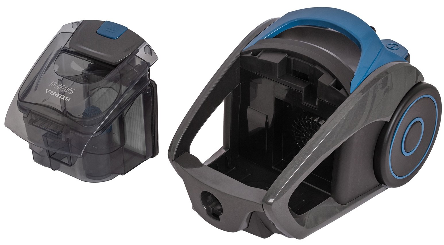 Представьте себе пылесос, который не только эффективно справляется с пылью и грязью, но и делает процесс уборки максимально комфортным. Именно таким является циклонный пылесос SUPRA VCS-2400 в стильном серо-синем цвете.