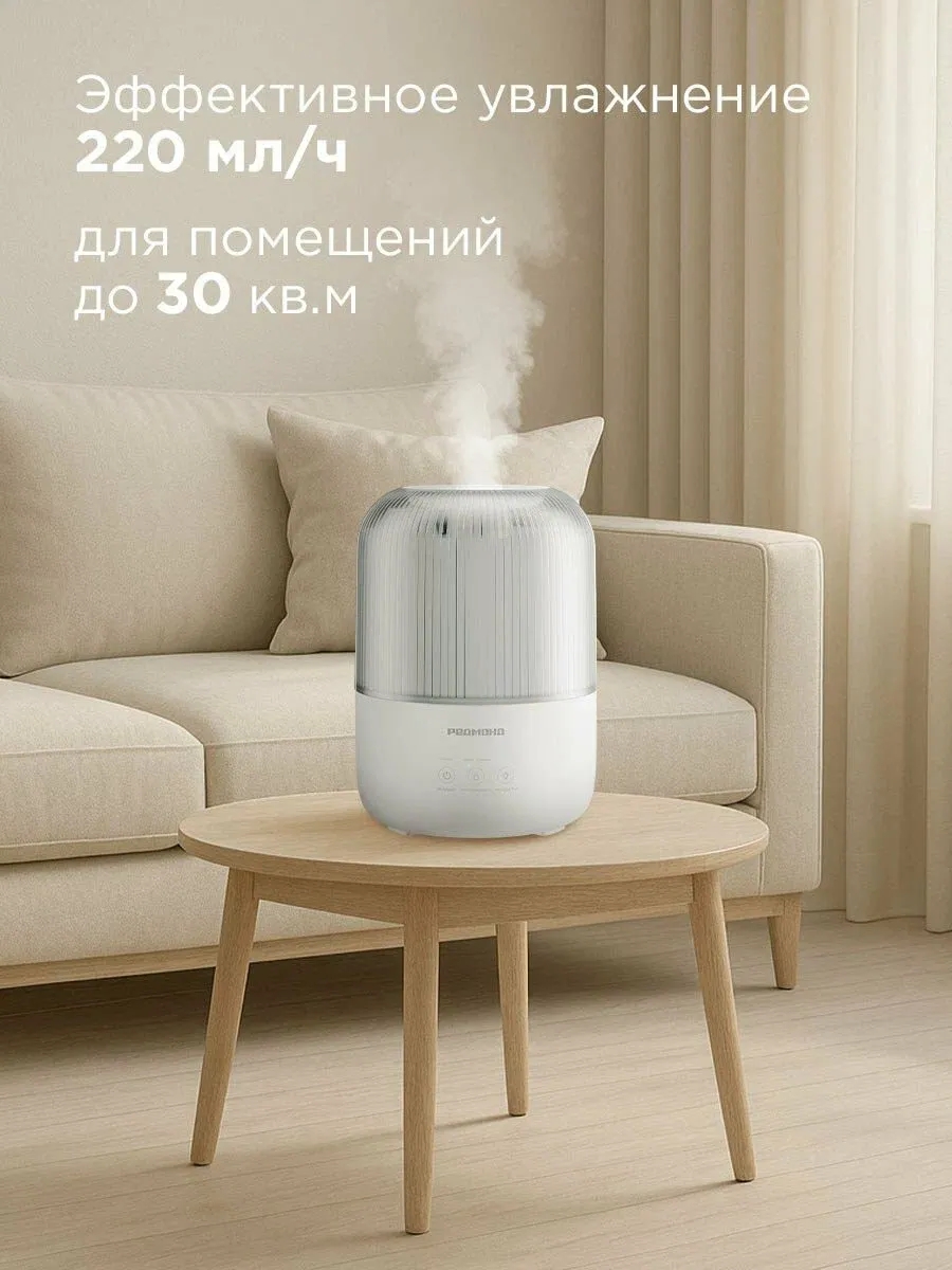 Хотите, чтобы воздух в вашем доме был свежим и увлажнённым? Увлажнитель воздуха REDMOND HF2204 станет вашим надёжным помощником! Этот стильный прибор не только улучшит качество воздуха в помещении, но и украсит ваш интерьер благодаря элегантному белому цвету и яркой подсветке.