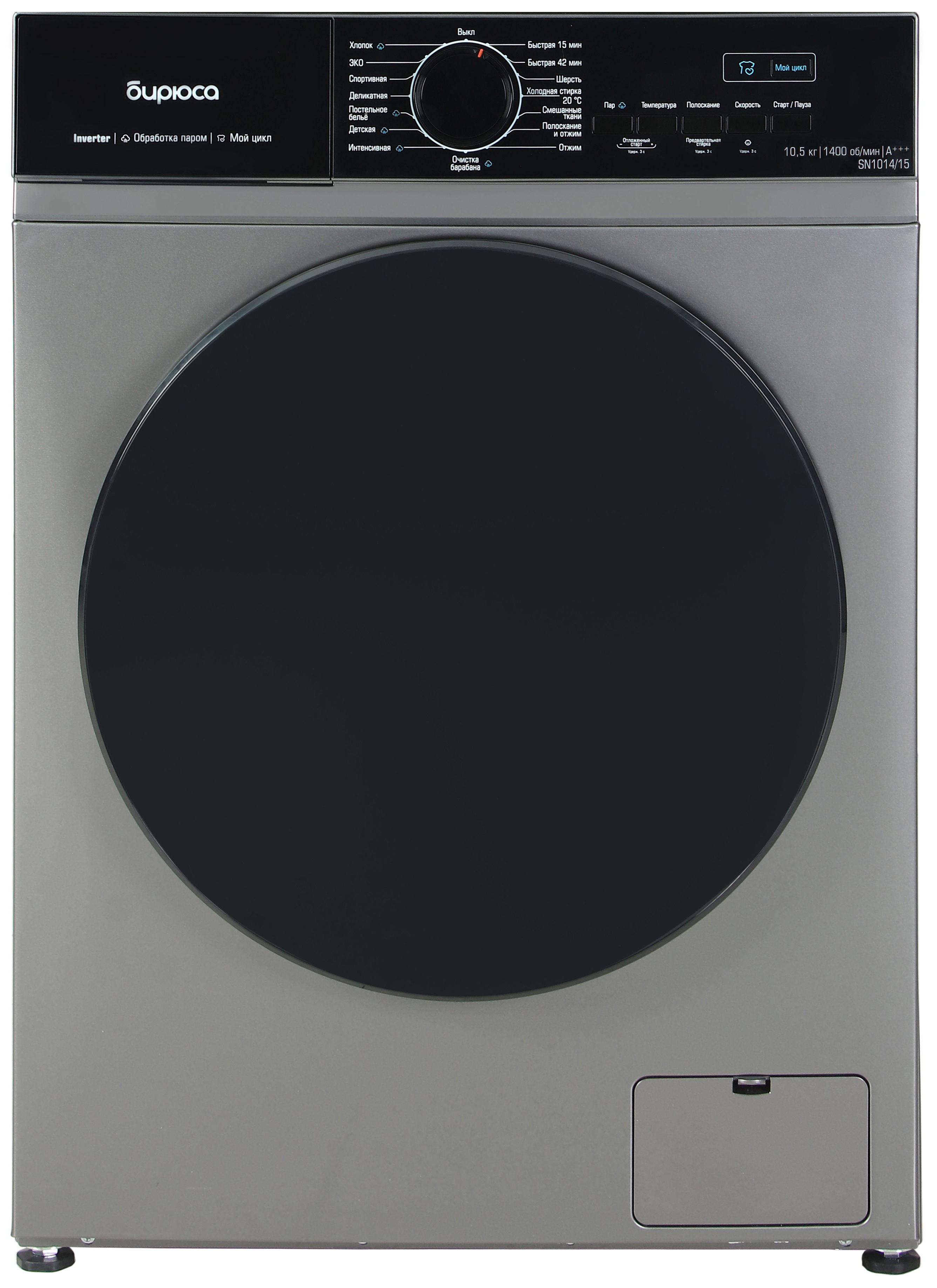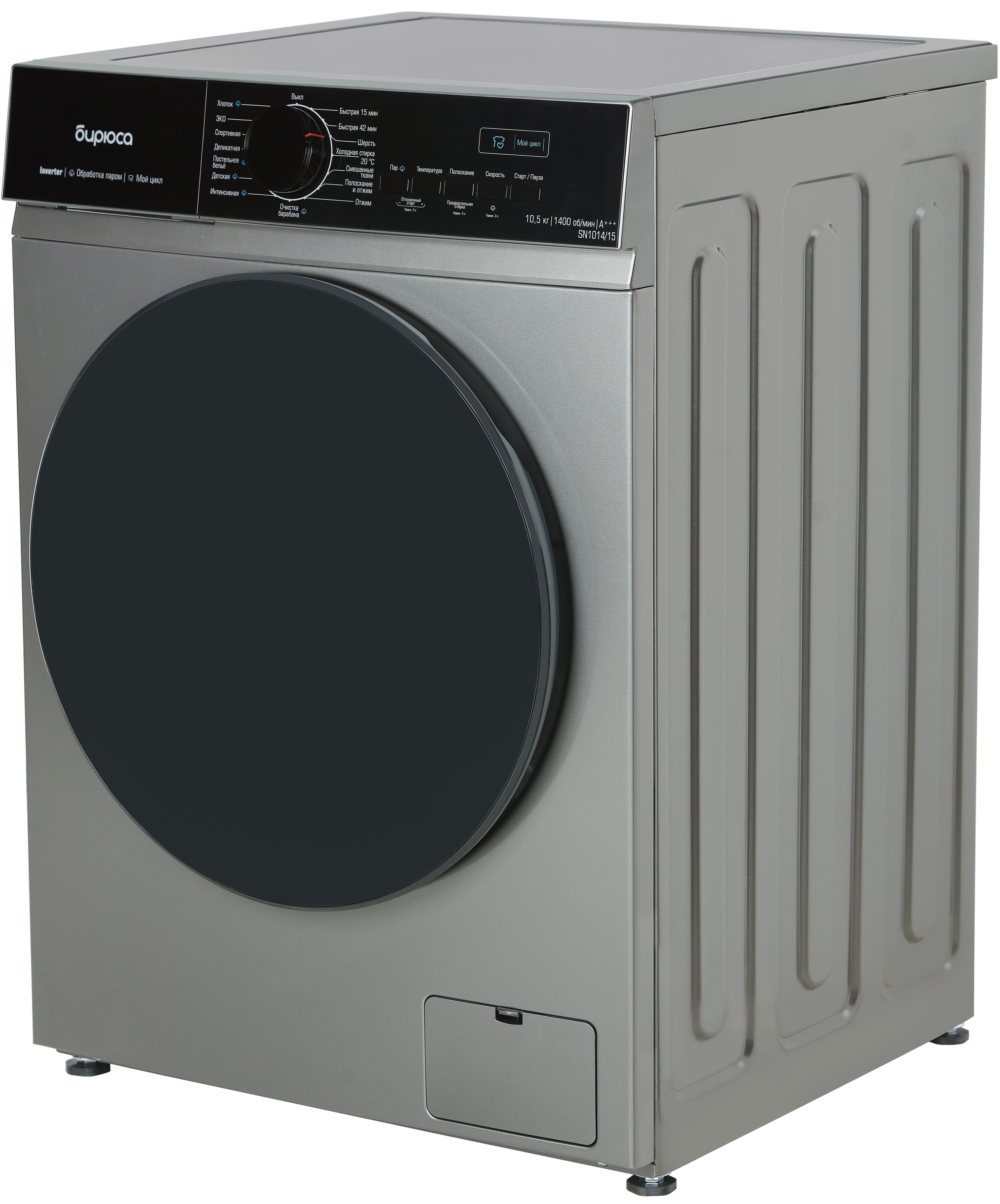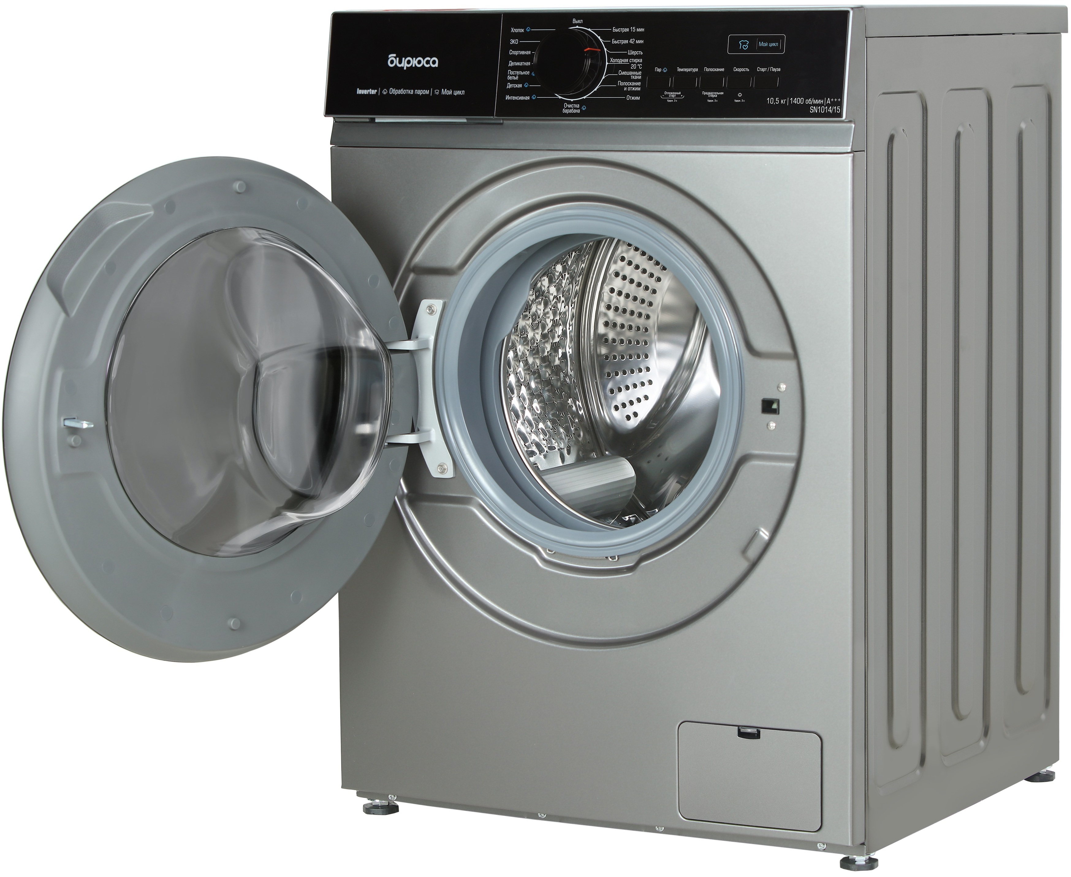 Стиральная машина Бирюса WM-SN1014/15 M в цвете металлик — это современное и функциональное решение для вашей семьи. С загрузкой до 10,5 кг и объёмом барабана 64 л она позволит вам стирать большие объёмы белья за один раз, что особенно удобно для больших семей.