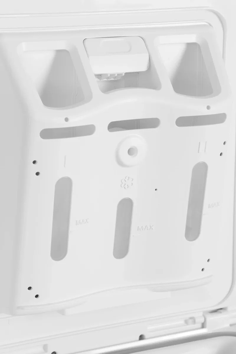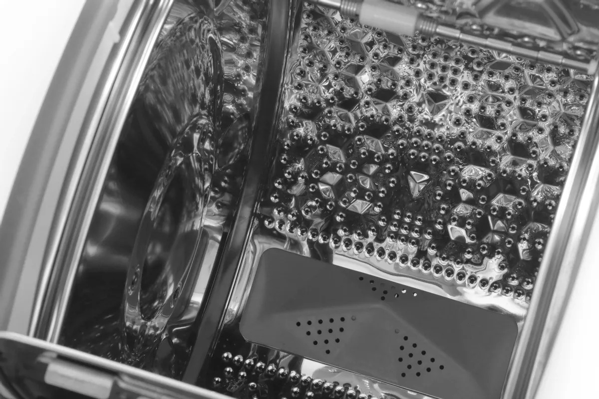 Барабан из нержавеющей стали гарантирует долговечность и надёжность, а полимерный бак способствует стабильной работе устройства. При этом уровень шума при стирке составляет всего 59 дБ, что делает работу машины достаточно комфортной даже в открытых пространствах.