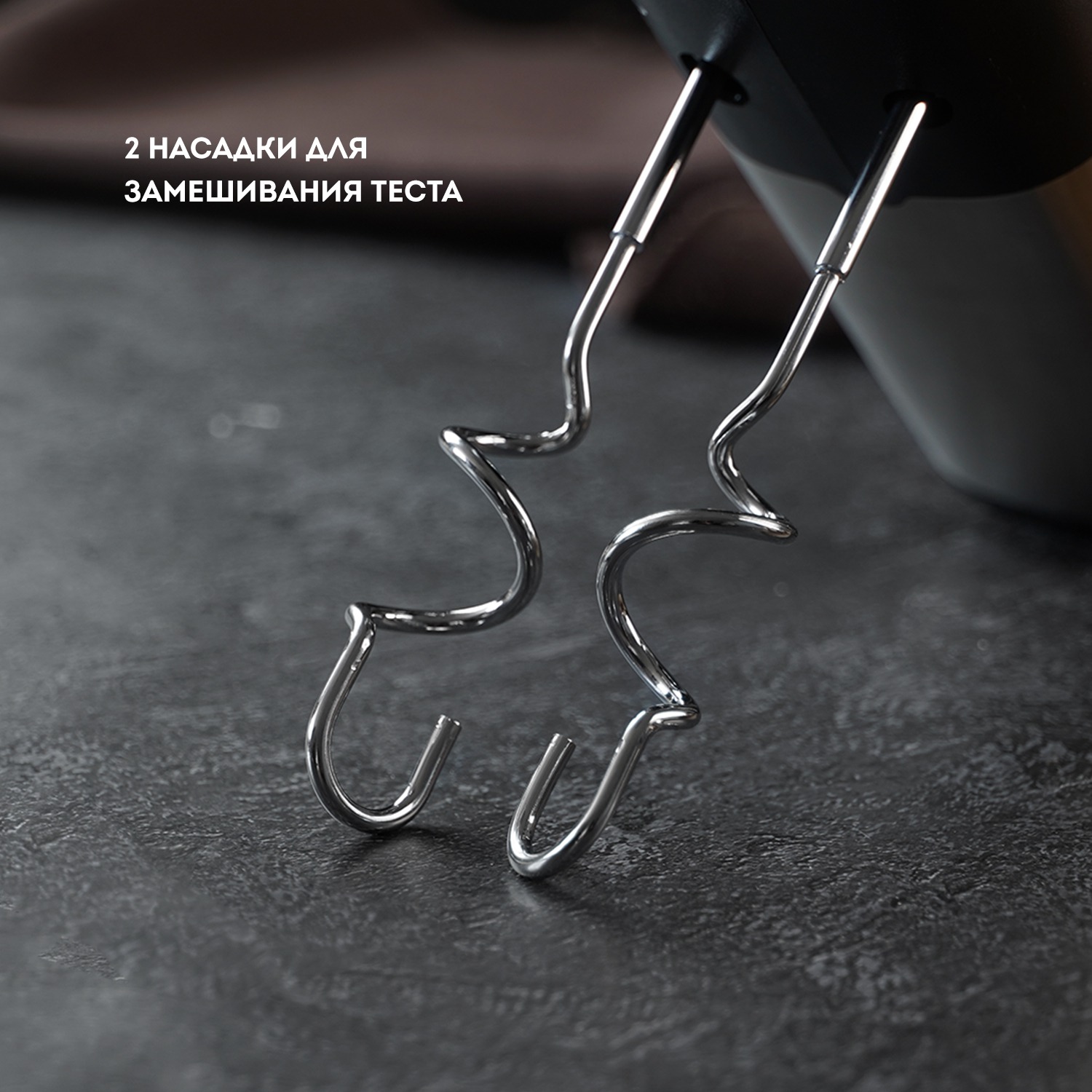 Благодаря пяти скоростным режимам и специальному режиму «Турбо» вы сможете подобрать оптимальные настройки для любого рецепта. Две насадки для замешивания теста и две насадки-венчика в комплекте позволят расширить кулинарные возможности и разнообразить меню.