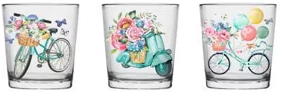 На поверхности стаканов изображён жизнерадостный рисунок с цветами, воздушными шариками и велосипедом — такие мотивы наполнят ваш дом уютом и создадут атмосферу беззаботного праздника. ОСЗ давно зарекомендовал себя как производитель качественной посуды, и этот набор не исключение.
