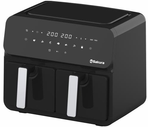 Аэрогриль Sakura SA-7687BK — это современная кухонная техника, которая превратит вашу кухню в настоящий кулинарный рай! С мощностью 1700 Вт и общим объёмом 10 литров (две чаши по 5 литров) он позволит вам готовить разнообразные блюда быстро и без лишних усилий.