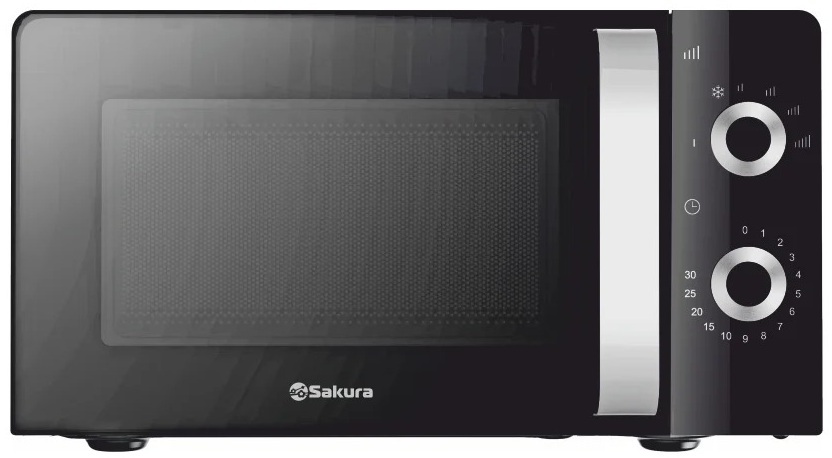 Микроволновая печь Sakura SA-7056BK — это стильное и функциональное решение для вашей кухни. Чёрный цвет корпуса и чёрные ручки гармонично сочетаются с белой передней панелью, что позволяет печи вписаться в любой интерьер.
