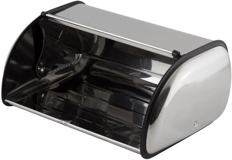 Благодаря своим характеристикам нержавеющая сталь не вступает во взаимодействие с продуктами, не изменяет их запах и вкус, а также отличается высокой прочностью и коррозионной стойкостью. Размер хлебницы — 35х22х15 см — позволит удобно разместить в ней достаточное количество хлебобулочных изделий.