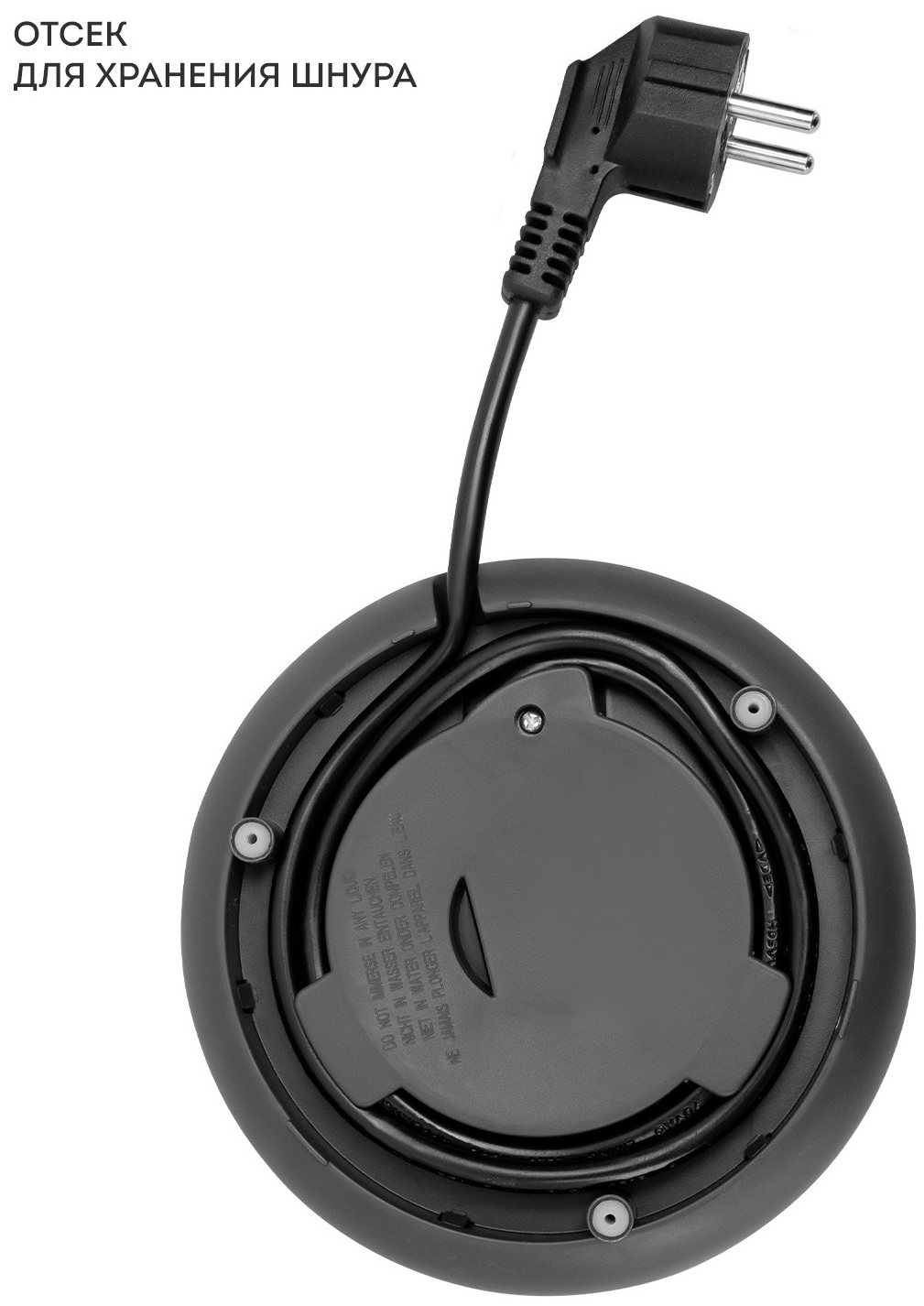 Безопасность использования обеспечивается за счёт автоотключения при закипании и автоотключения при отсутствии воды. Длина шнура питания в 72 см обеспечит удобство размещения чайника на кухне.
