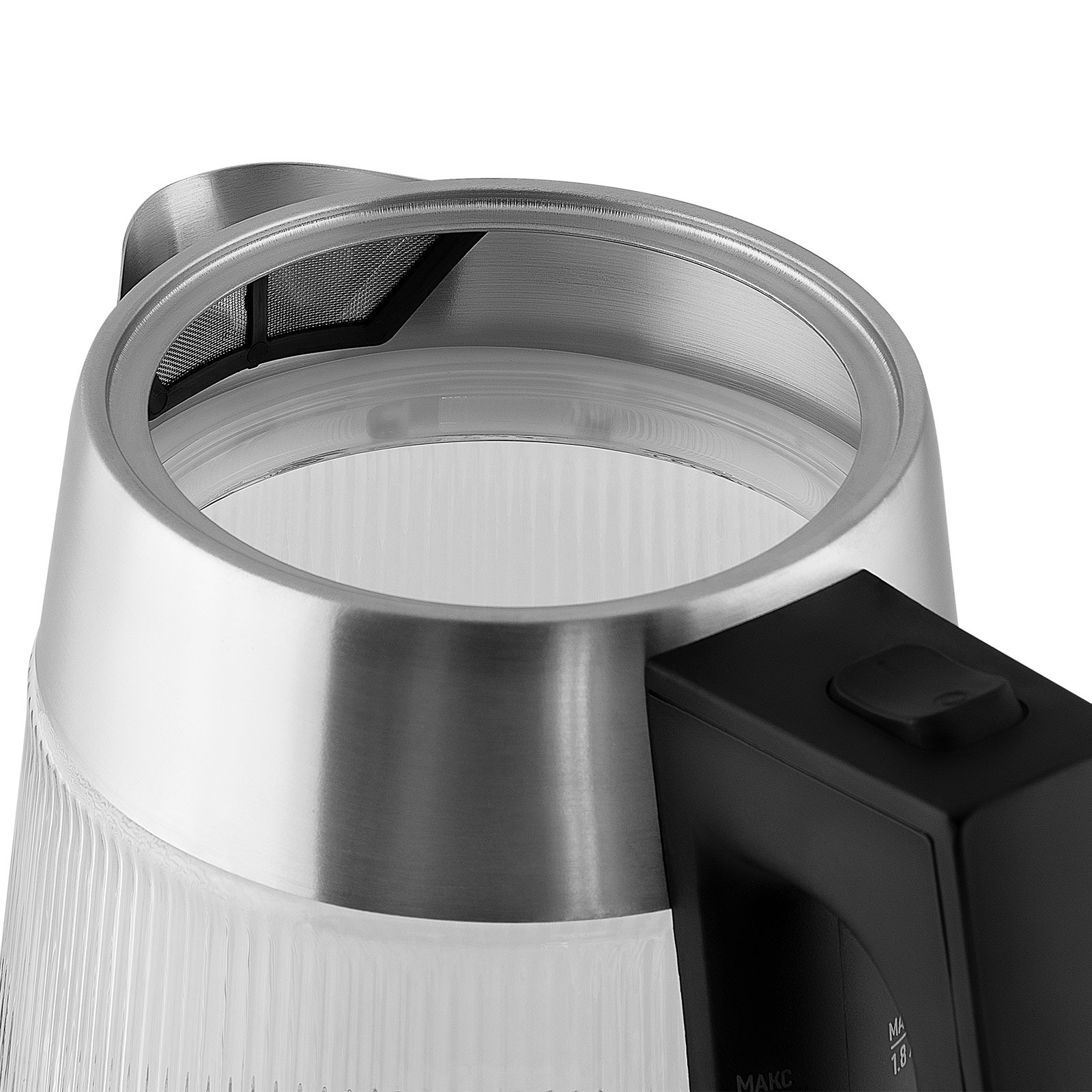 Благодаря мощности в 2200 Вт вода закипает за считанные минуты — больше не нужно долго ждать, чтобы насладиться чашкой ароматного чая или кофе. Корпус из термостойкого стекла не только придаёт чайнику элегантный вид, но и позволяет сохранить чистый вкус воды, не искажая его.