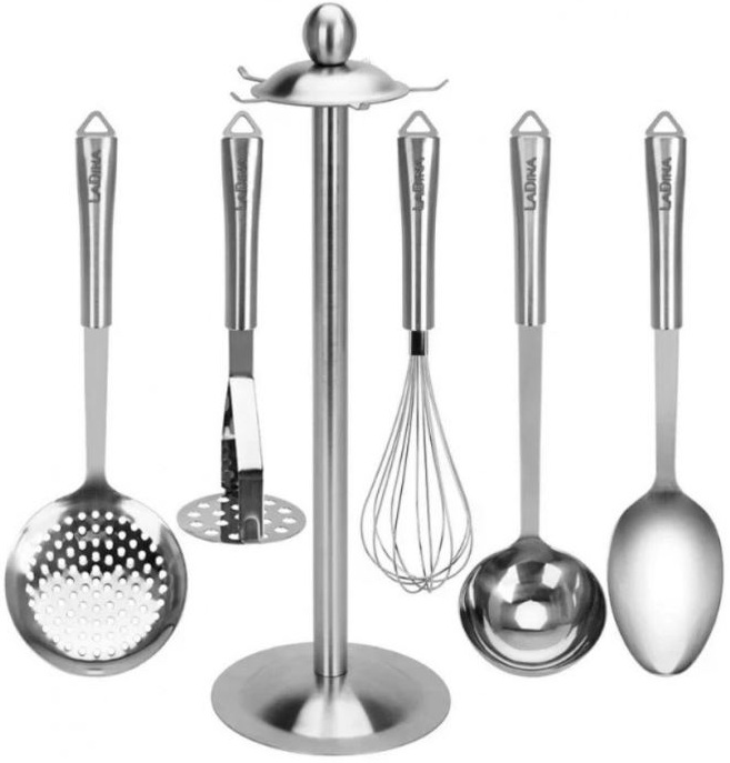 Набор кухонных принадлежностей LaDina 19400/12 (6 предметов) — ваш надёжный помощник на кухне! С ним приготовление домашних блюд станет настоящим удовольствием. В наборе вы найдёте всё необходимое: половник, шумовку, поварскую ложку, толкушку, венчик и удобную вращающуюся на 360° подставку.
