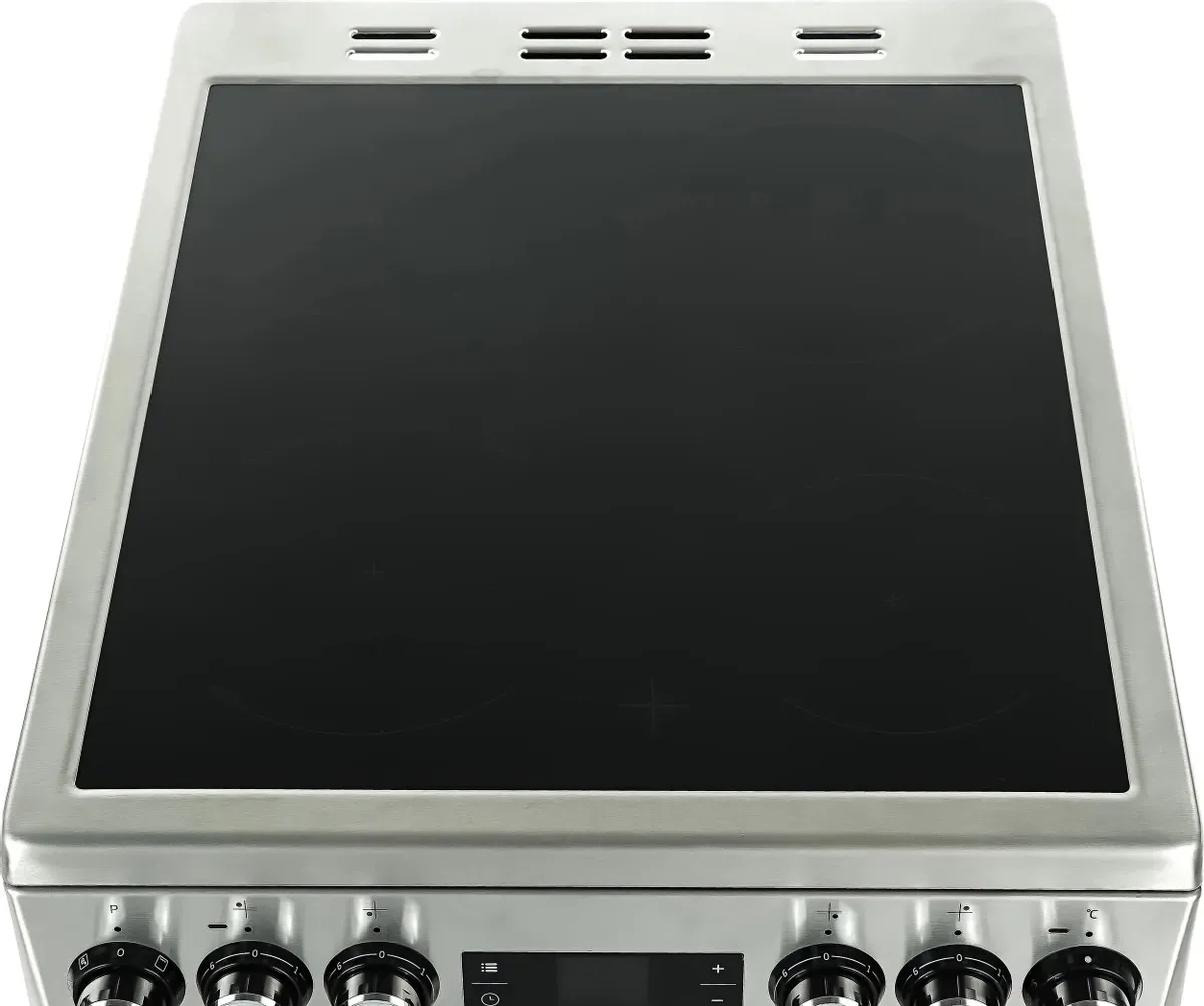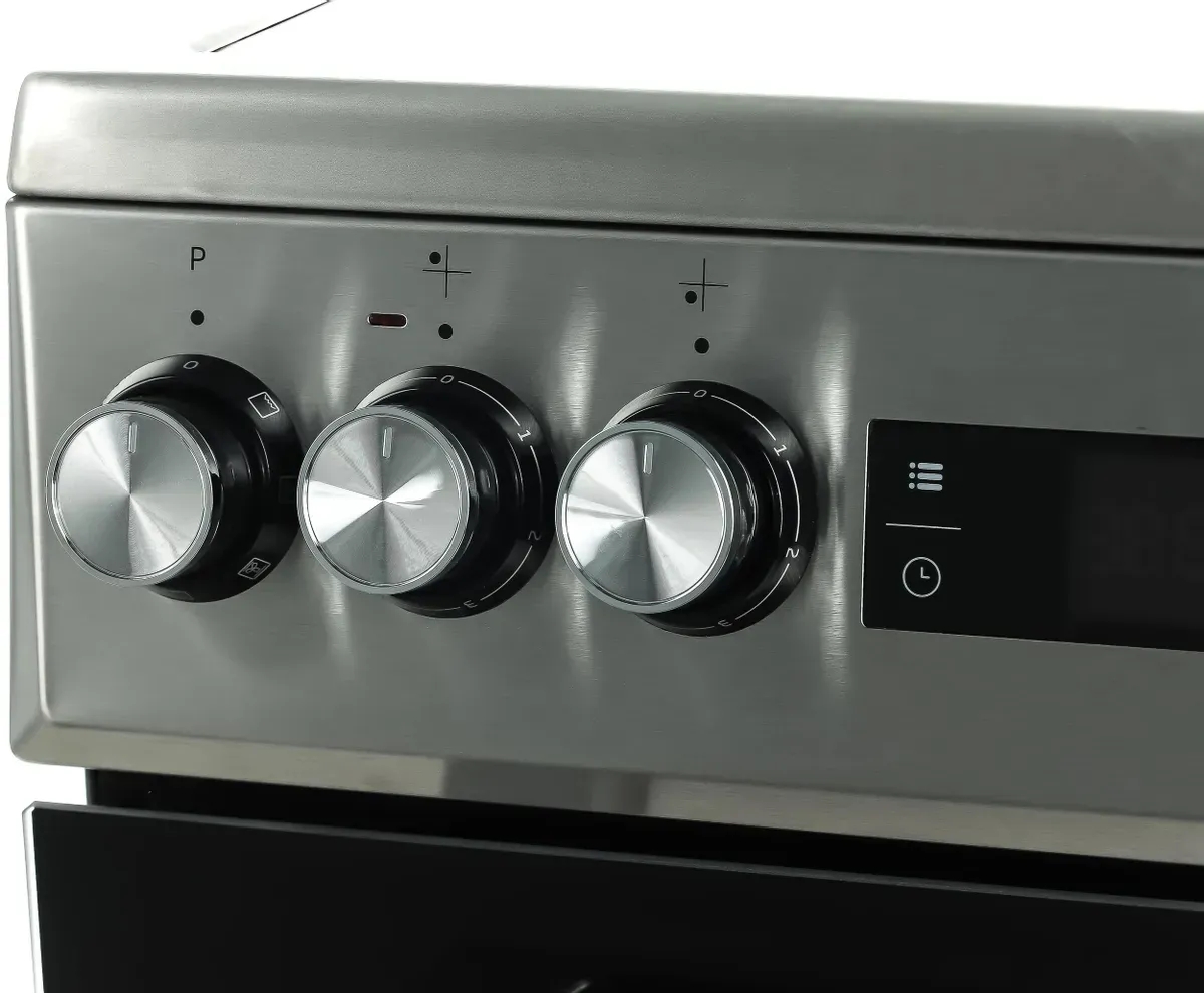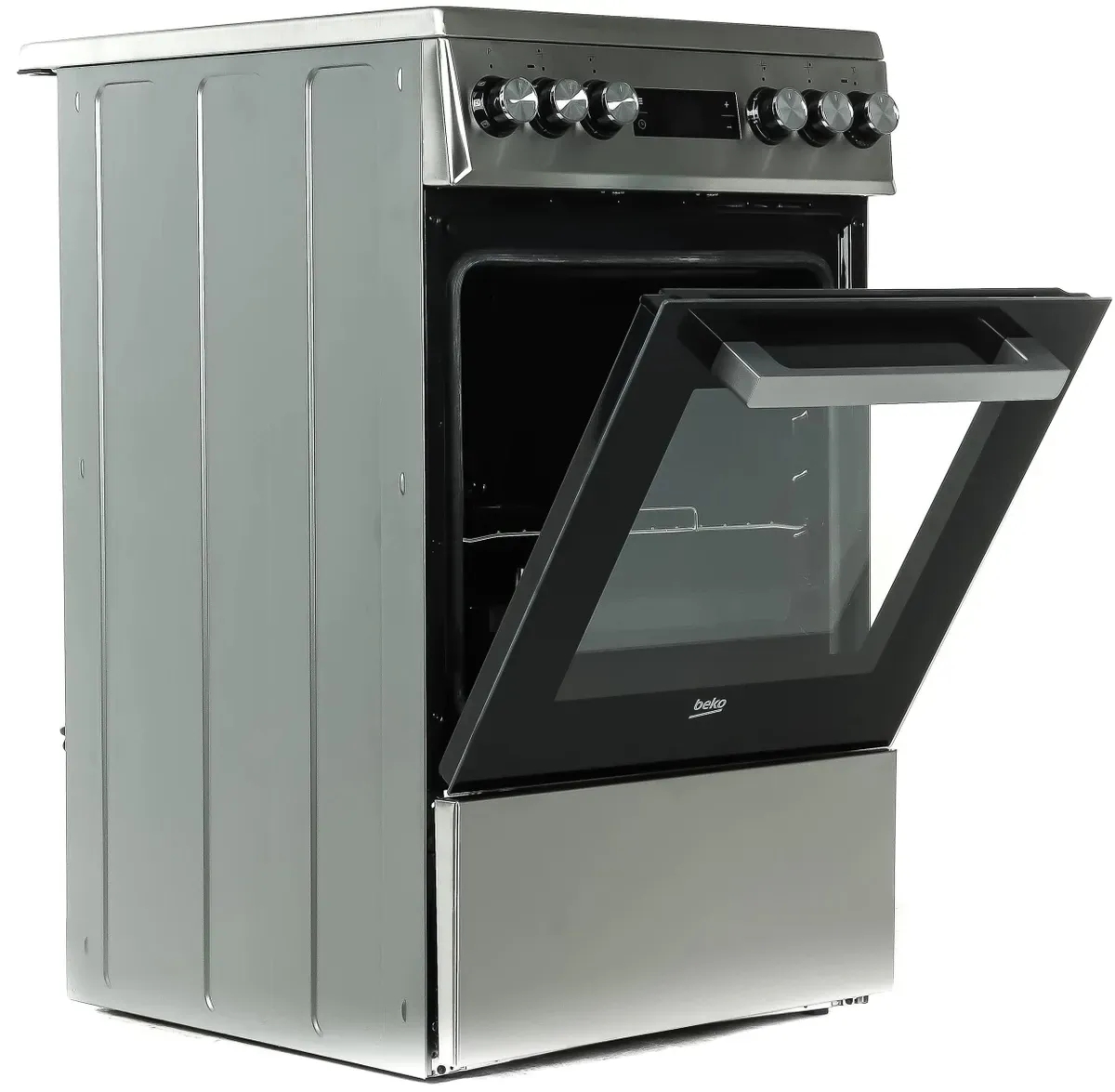 Электрическая плита Beko FSM57300GX в корпусе цвета нержавеющей стали оснащена стеклокерамической варочной панелью с 4 конфорками (диаметром 14 и 18 см) и вместительным духовым шкафом на 55 литров, что позволяет готовить несколько блюд одновременно. Управление осуществляется через дисплей, таймер и поворотные механизмы, а простота очистки обеспечивается стеклокерамической поверхностью варочной панели и паровой системой очистки духового шкафа (с подсветкой), обеспечивающей равномерное пропекание блюд. Дополнительным преимуществом служит наличие ящика для посуды, а сочетание практичности, стильного дизайна и функциональности делает модель Beko FSM57300GX оптимальным выбором для любителей готовить.