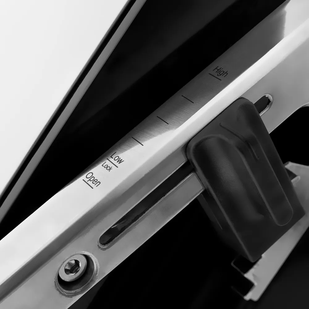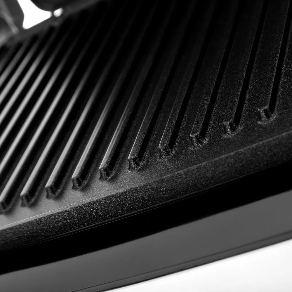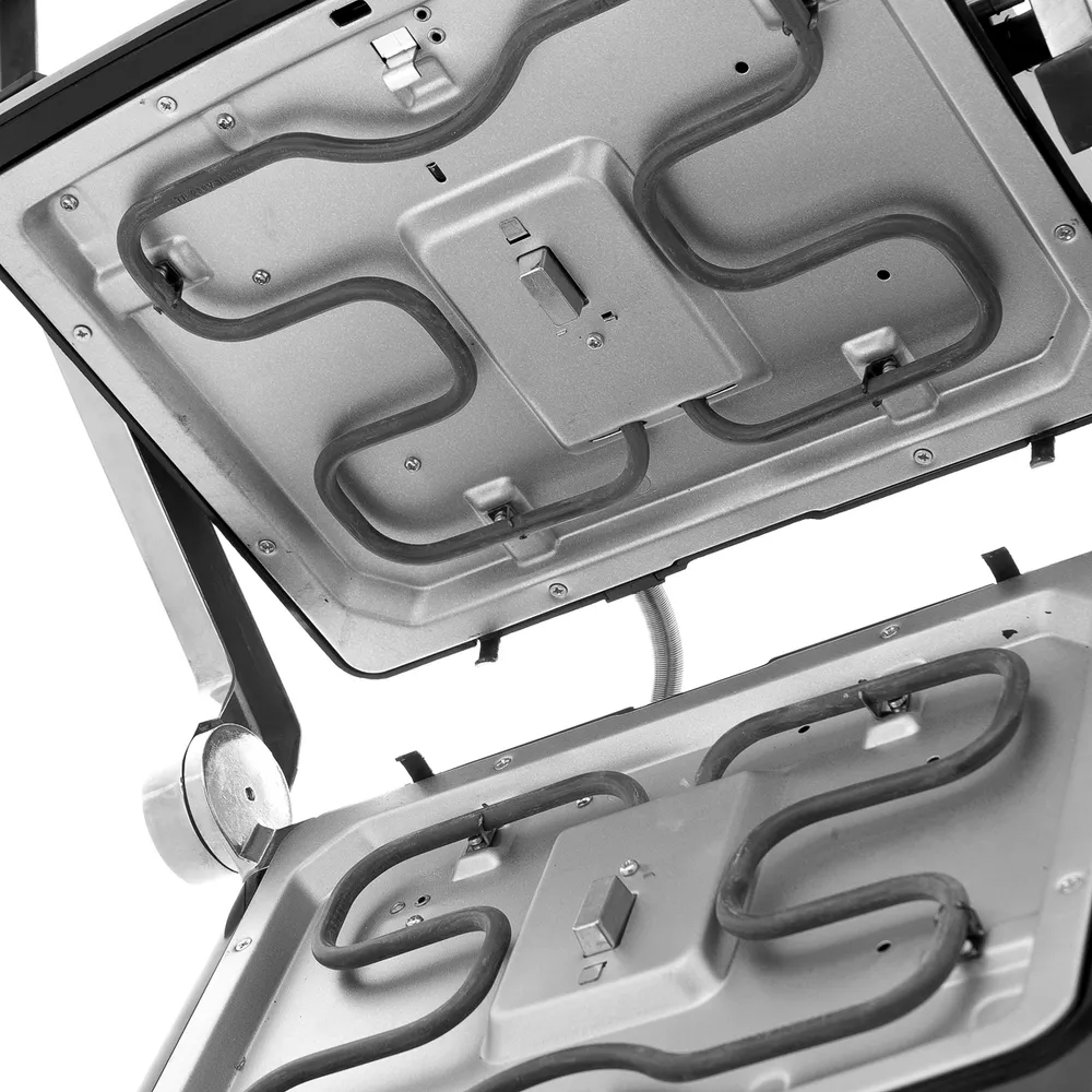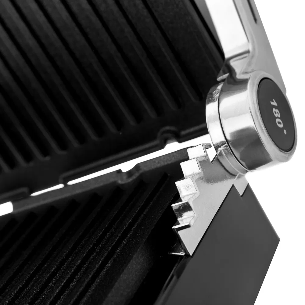Особенность модели — возможность открытия на 180°. Это значительно расширяет функциональность гриля и позволяет готовить более разнообразные блюда.
