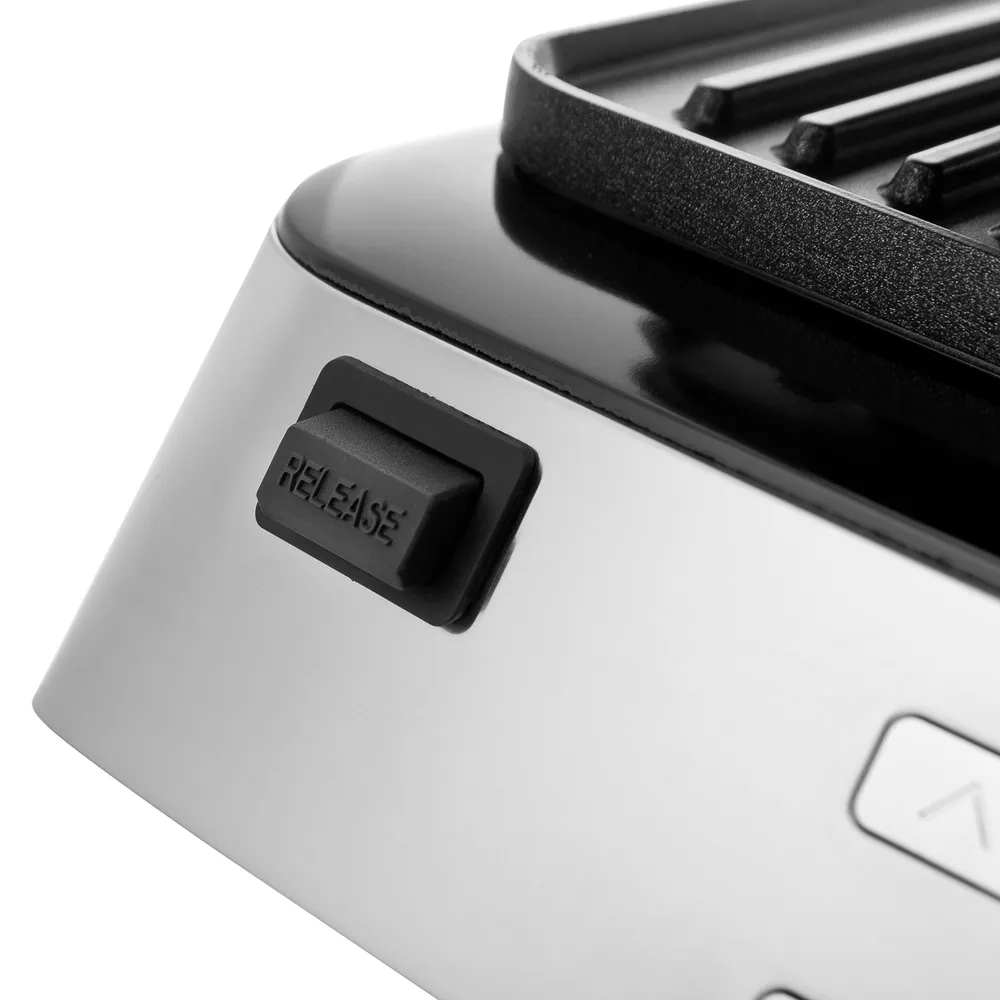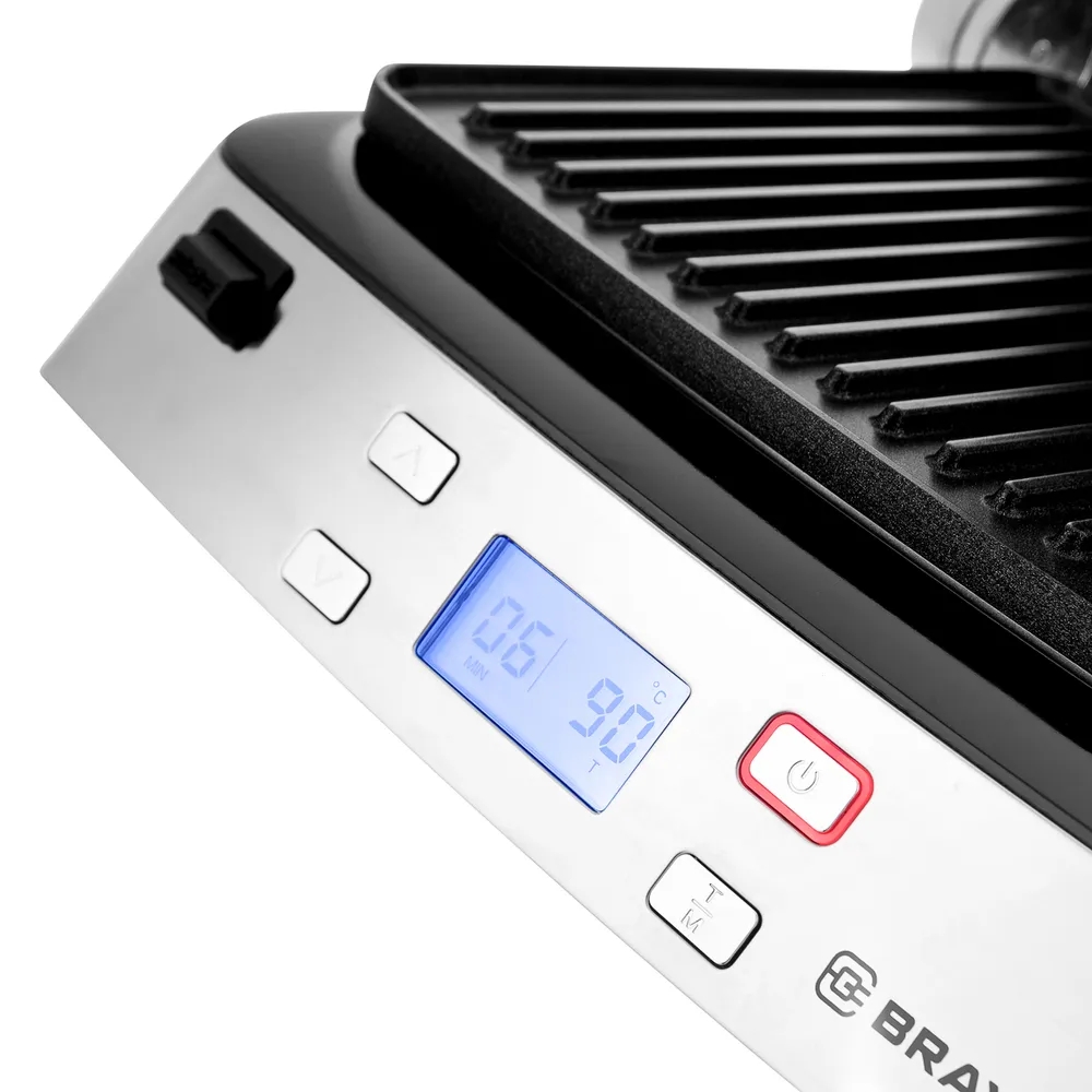 Электронное управление и LCD-дисплей делают использование гриля максимально удобным: вы сможете легко настроить необходимые параметры и следить за процессом приготовления. Съёмные пластины упрощают уход за устройством — их легко снять и помыть, что сэкономит ваше время и силы.
